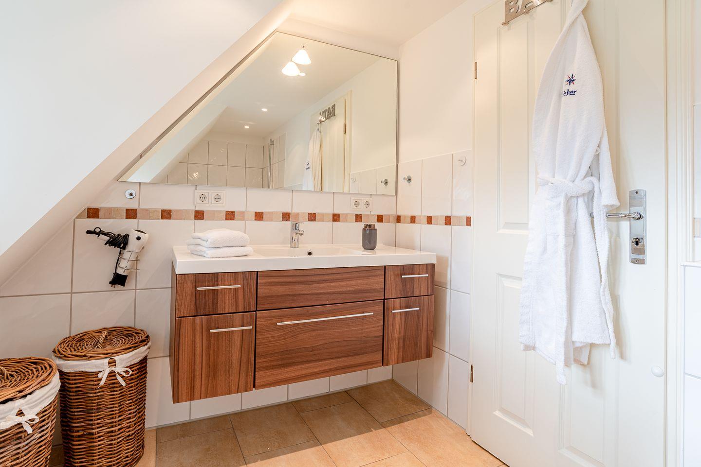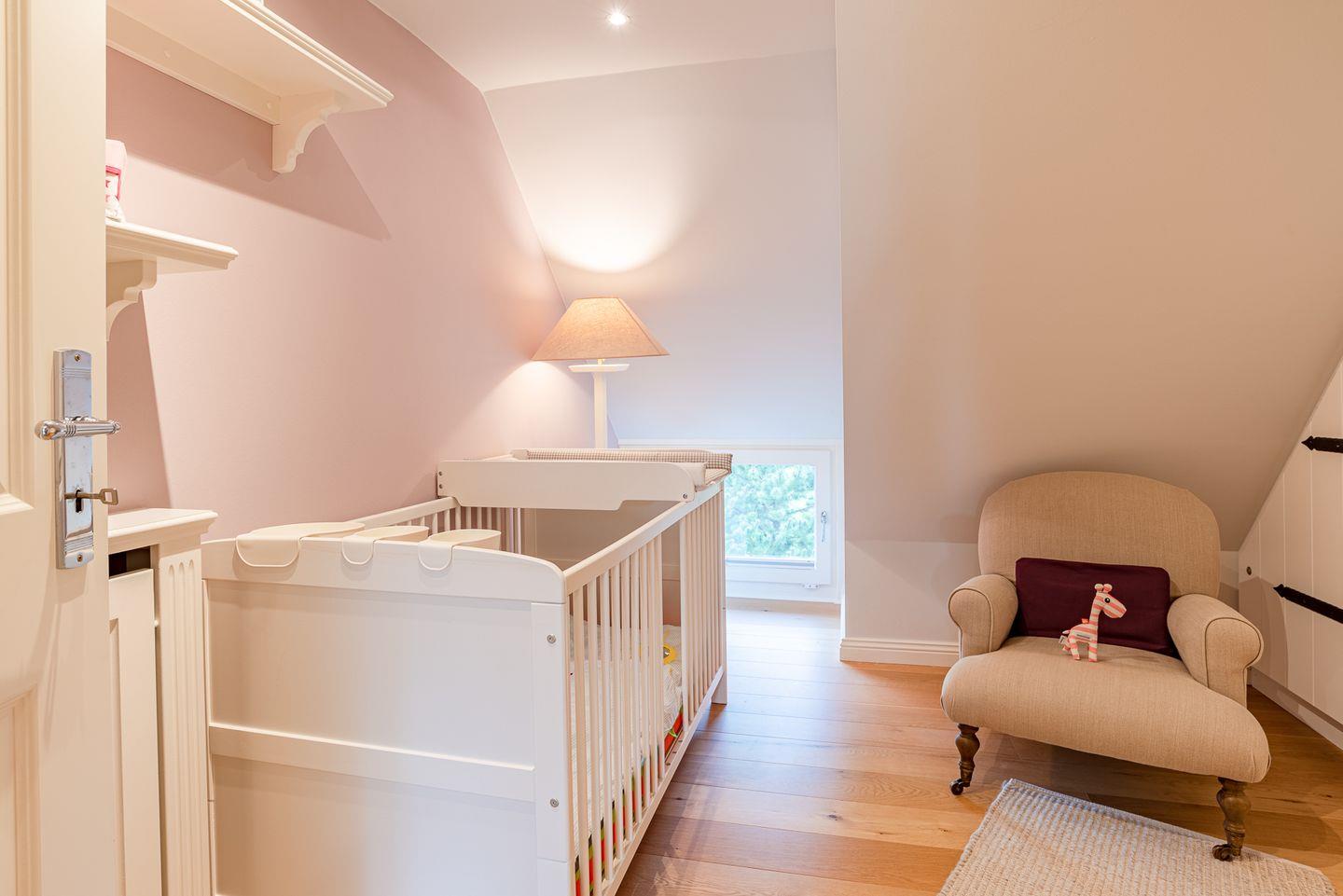 Im Obergeschoss sind die drei Schlafzimmer - zwei mit jeweils einem Doppelbett und eines mit einem Babybett ausgestattet -, sowie das Vollbad gelegen.