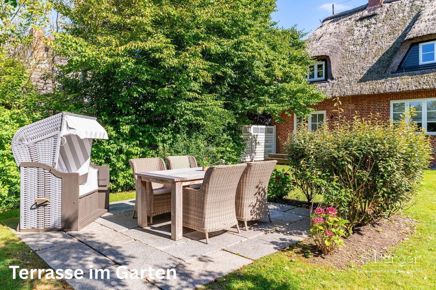 Genießen Sie einen exklusiven Urlaub unter Reet, der zahlreiche kostenlose Annehmlichkeiten bietet, darunter: Waschmaschine und Trockner im Keller sind gratis nutzbar, einen Strandkorb direkt am Objekt und eine abschließbare Fahrradgarage.