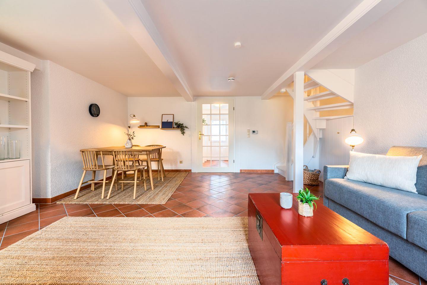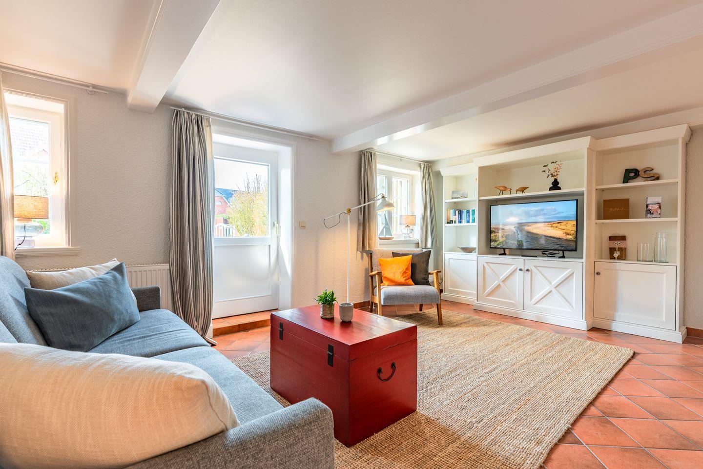 Die Wohnung verfügt über ein helles Wohnzimmer, eine voll ausgestattete Küche und ein komfortables Schlafzimmer, in dem Sie nach einem erlebnisreichen Tag zur Ruhe kommen können. Der umzäunte Garten lädt dazu ein, die frische Nordseeluft zu genießen und mit Ihrem Hund ausgedehnte Spaziergänge zu unternehmen.