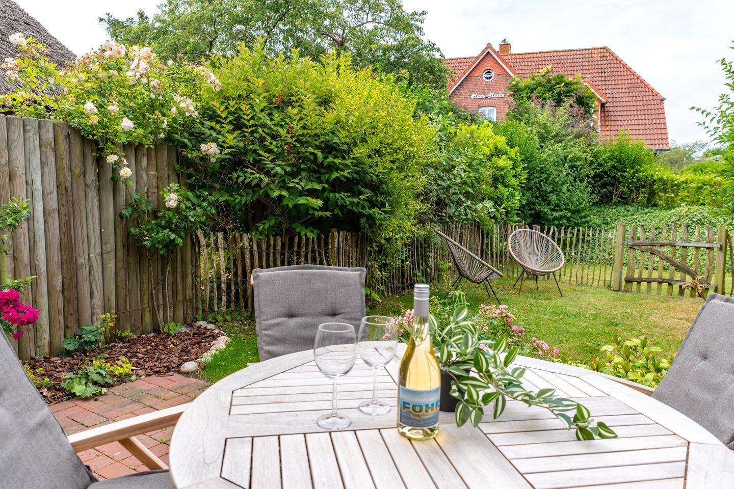 Ferienwohnung unter Reet mit Garten und Terrasse und Sauna.
