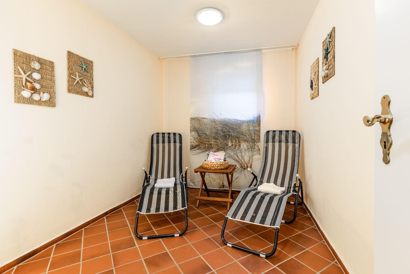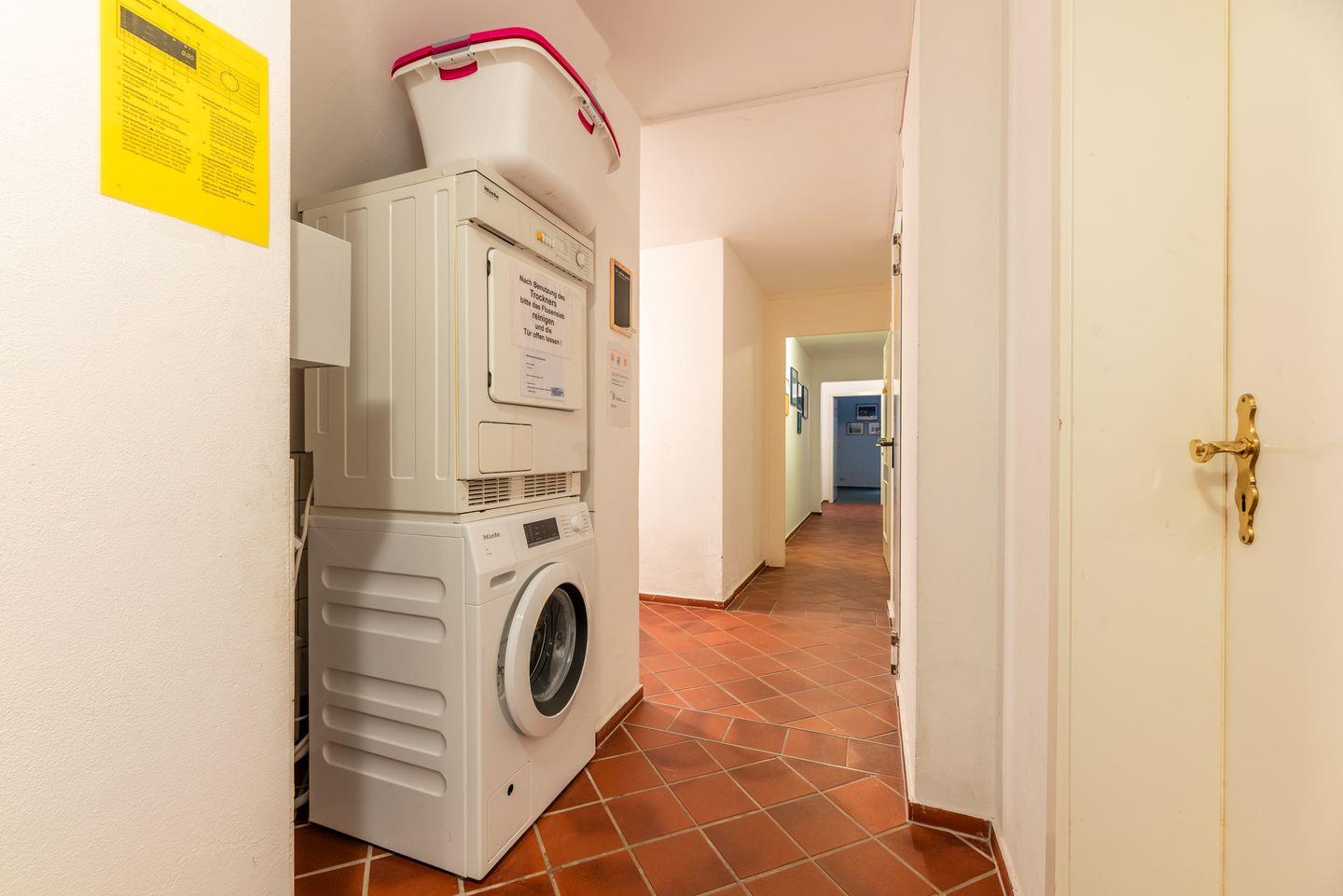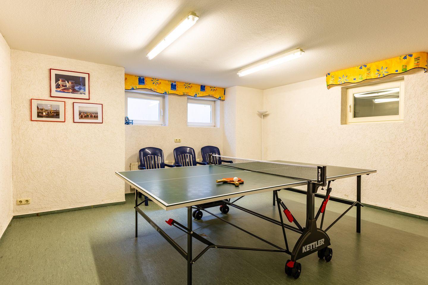 Gemeinschaftlich: Waschmaschine und Trockner befinden sich im Keller des Nebengebäudes, Sauna, Solarium sowie eine Tischtennisplatte sind ebenfalls vorhanden.
