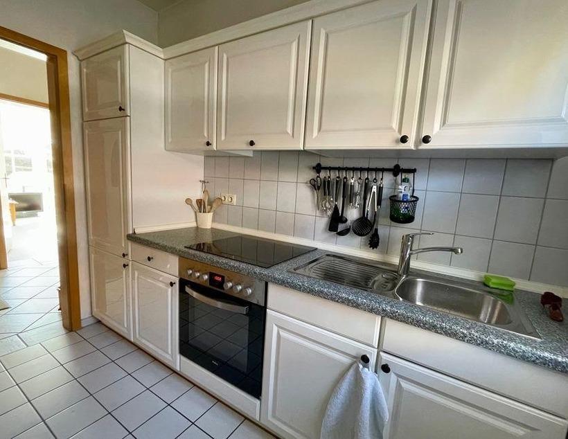 Die Küche ist modern eingerichtet und frisch renoviert. Es sind ein 4-Platten-Herd, Backofen, Dunstabzugshaube, Mikrowelle, Geschirrspüler , Kühlschrank mit Eisfach sowie Kaffeemaschine vorhanden.