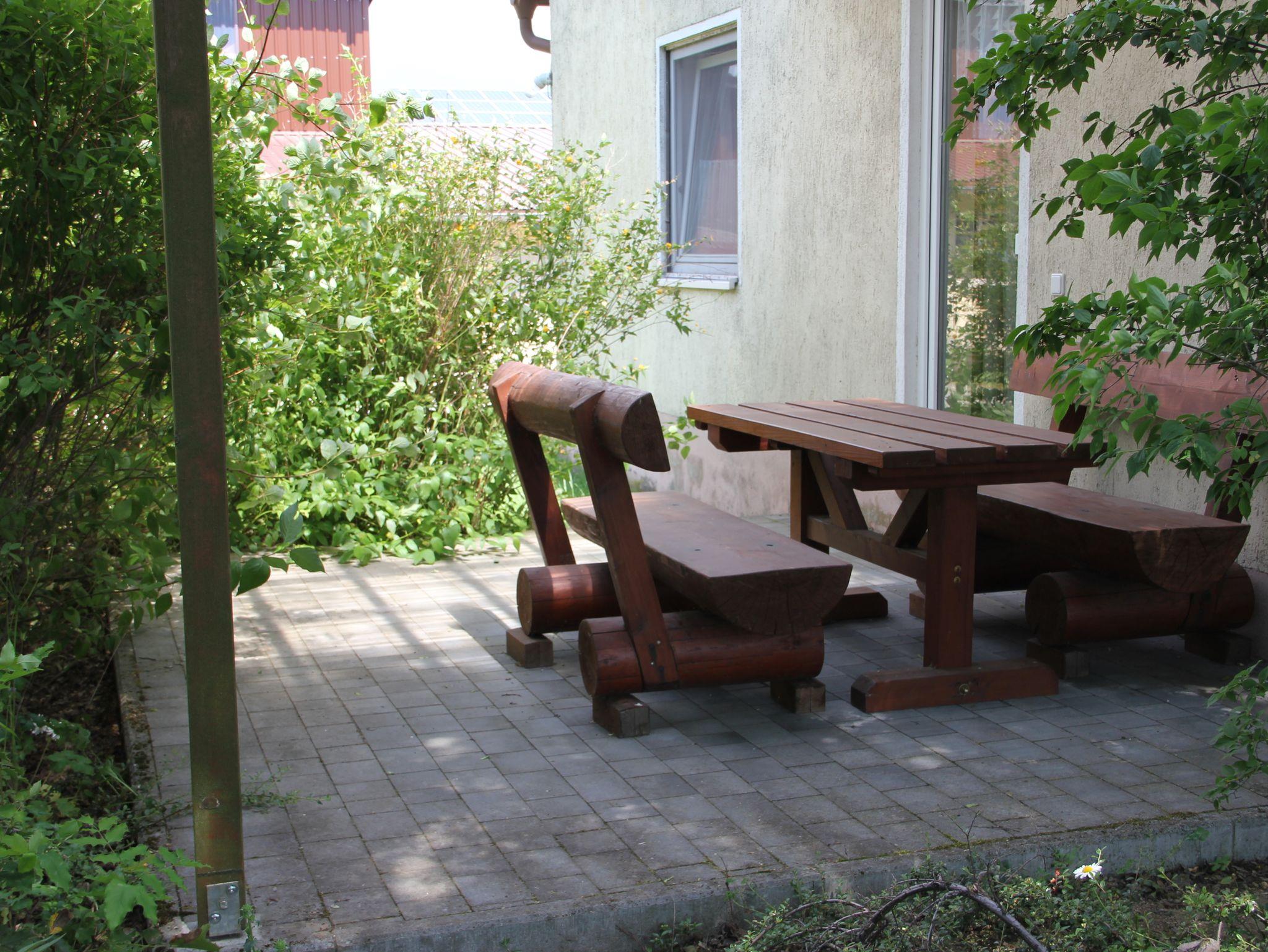 Die Ferienwohnung befindet sich im Anbau an das Ferienhaus, mit eigenem Hauseingang und besteht aus einem großen Wohnraum mit kompletter, gut ausgestatteter Küchenzeile, Essplatz, Doppelschlafcouch, Ausgang zur eigenen, überdachten Terrasse mit Gartenmöbeln, einem Schlafraum mit Doppelbetten, auf Wunsch Kinderbett, Dusche/WC.
