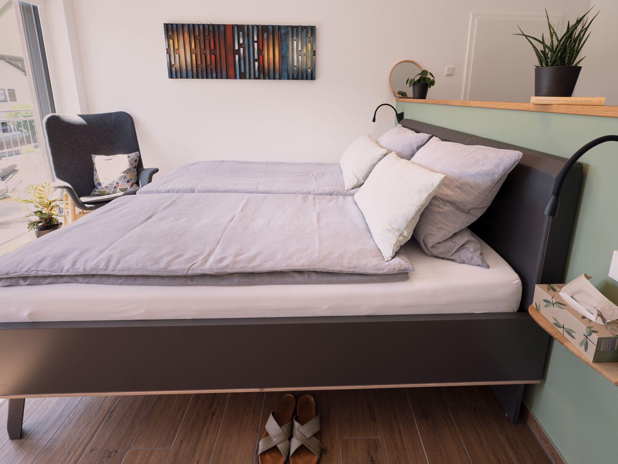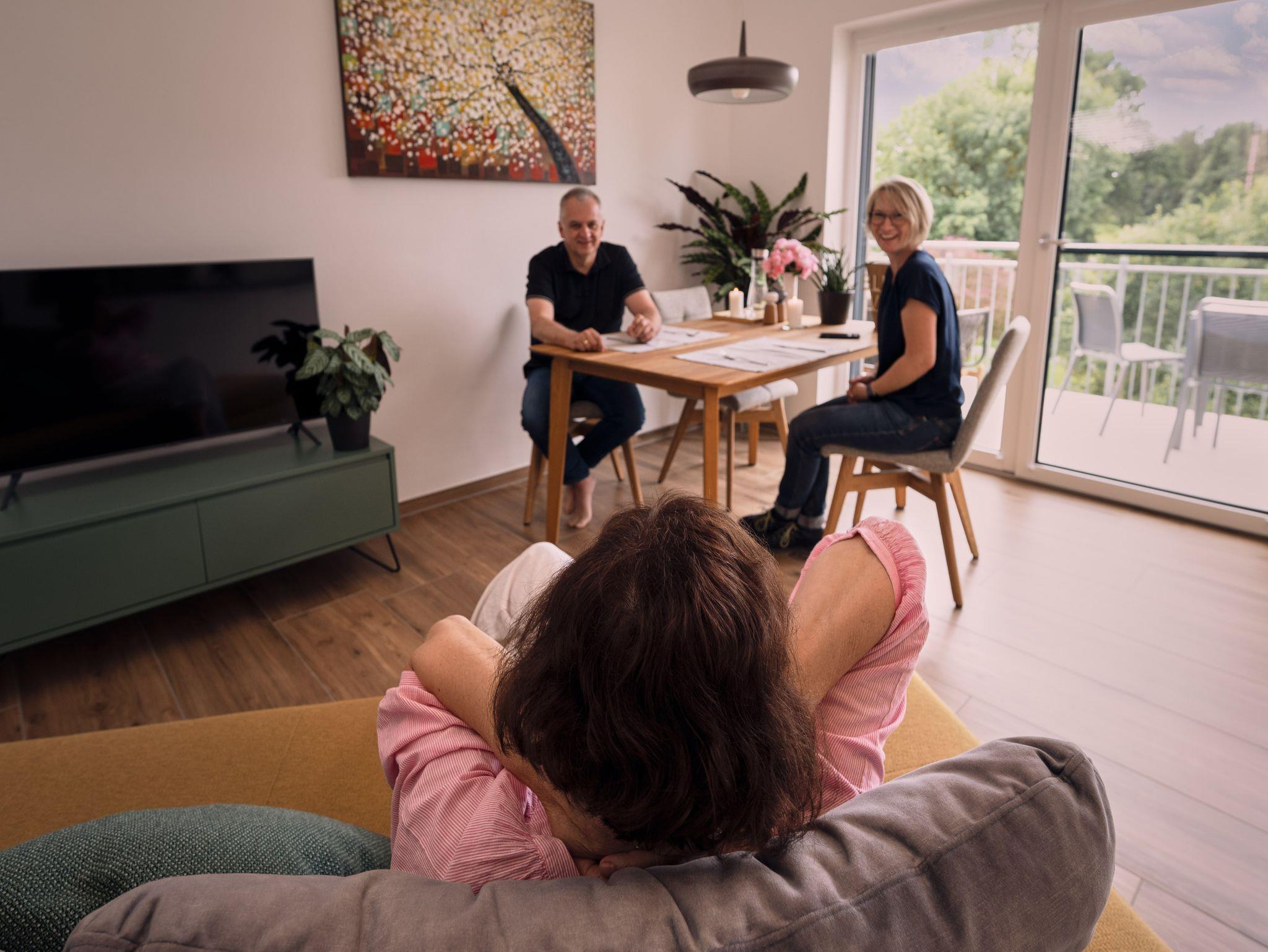 Der Balkon (15?qm) ist mit hochwertigen Lounge-Möbeln ausgestattet und bietet einen herrlichen Blick auf das Fichtelgebirge – ideal für entspannte Stunden im Freien. Smart-TVs mit Streaming-Diensten und ein Bose Soundsystem sorgen für Unterhaltung. Diese Wohnung ist barrierearm und besonders für Gäste mit körperlichen Einschränkungen geeignet.