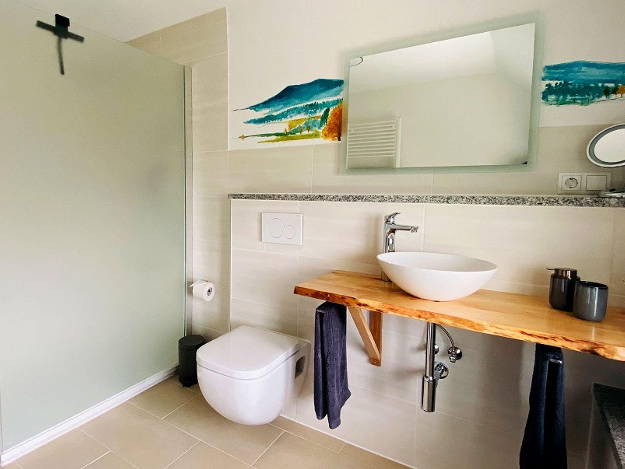 * Großzügiges Bad mit Walk-In-Dusche, Handtuchwärmer und Föhn