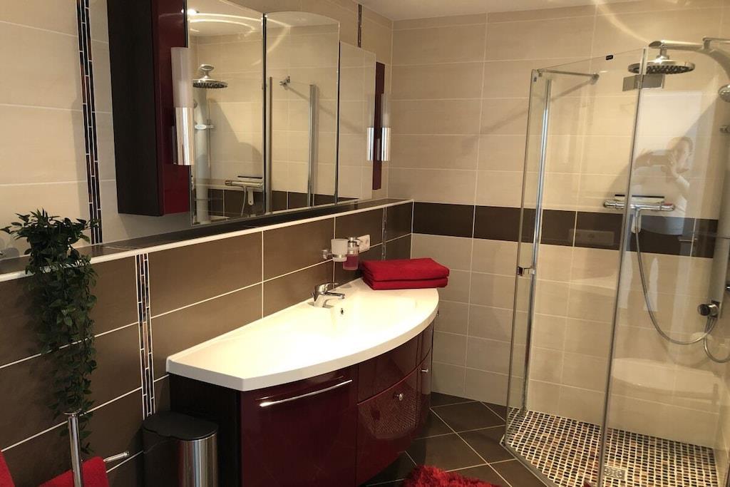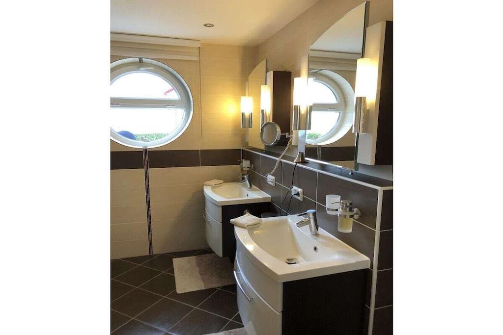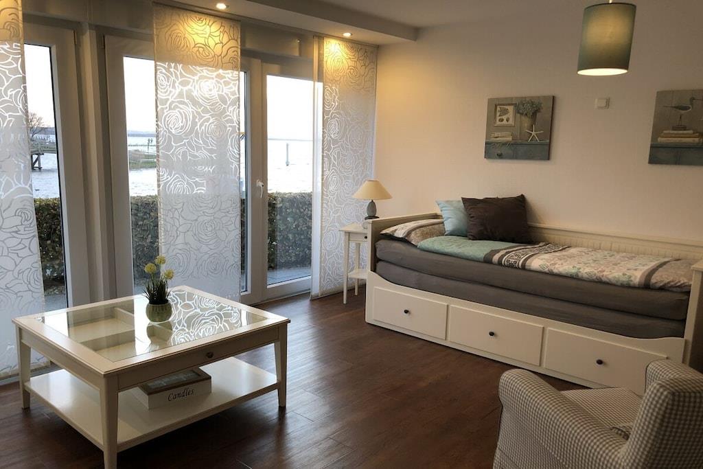 Velkommen til Herbst-ferielejligheden "Am Sturmhafen". Denne ferielejlighed af høj kvalitet ligger på anden sal i lejlighedskomplekset "Leuchtturm" (Fyrtårn), direkte ved den lille havn i Sturmhafen, med en førsteklasses central beliggenhed i Steinhude. Toværelseslejligheden byder på cirka 75 kvadratmeter boligareal med to rummelige terrasser (den ene mod øst, den anden mod vest med en elektrisk markise) og gulvvarme. Den lyse stue/spisestue er direkte forbundet med det åbne køkken, som inkluderer en morgenmadsbar. Gulv-til-loft-vinduerne er udstyret med udvendige rulleskodder. Derudover tilbyder vi vores gæster en underjordisk parkeringsplads med elevatoradgang fra garagen til hver etage, afslappende havestole og havemøbler, en komfortabel strandstol til solnedgange og meget mere. En smuk legeplads med et sandområde ligger lige ved siden af bygningen. Vi tilbyder dig en vidunderlig atmosfære og en betagende udsigt over Steinhude-søen til din ferie. Føl dig hjemme...