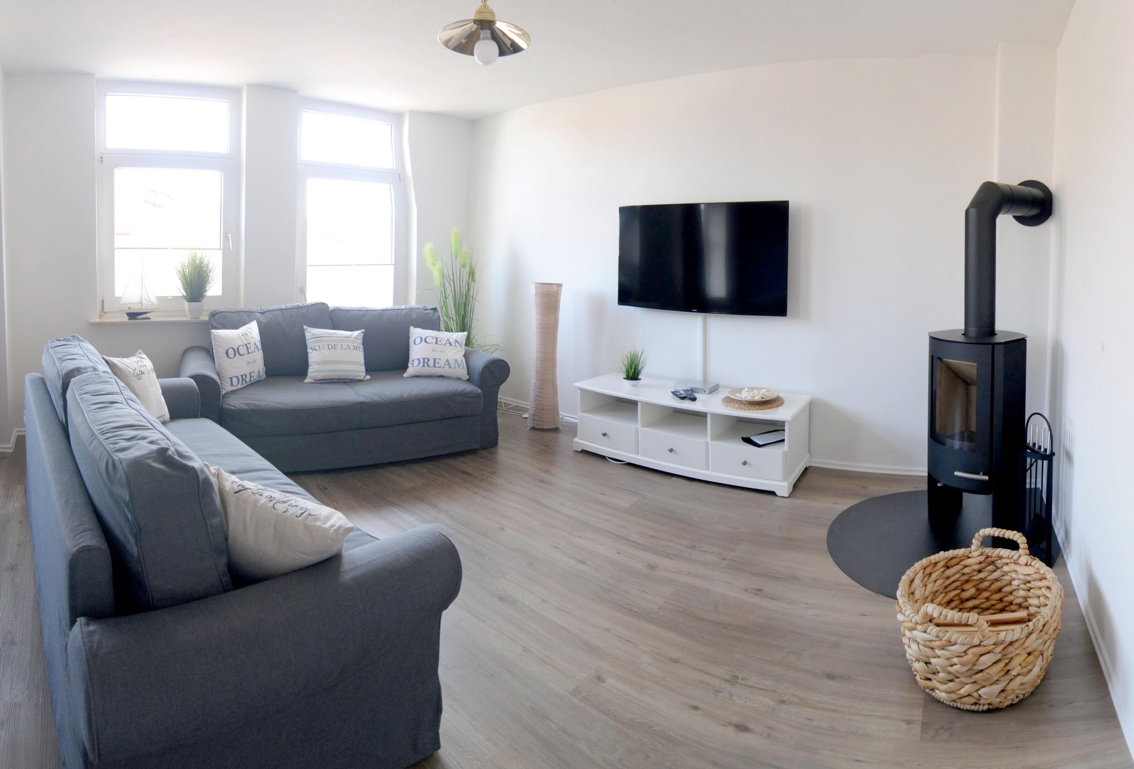 Die Größe der Ferienwohnung 2 umfasst 135 m² und sie liegt im 1. OG. direkt im Ortskern von Steinhude (An der Friedenseiche 12). Die Entfernung zum Steinhuder Meer beträgt 270 m.