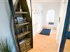Zur Küche gehört außerdem eine Grundausstattung zum Kochen, Geschirr und Besteck, Edelstahl-Backofen, Weingläser, Backblech. Ein Esstisch ist auch vorhanden.