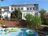 På 1. etage: (Køkken(kogeplade, elkedel, kaffemaskine, mikrobølgeovn, opvaskemaskine , køle-fryseskab, vaskemaskine), stue / spisestue(Fjernsyn, pejs, stereoanlæg), soveværelse(dobbeltseng), soveværelse(enkeltseng), badeværelse(badekar med bruser, håndvask, toilet), balkon) have, trampolin, swimmingpool(privat, udendørs), barneseng