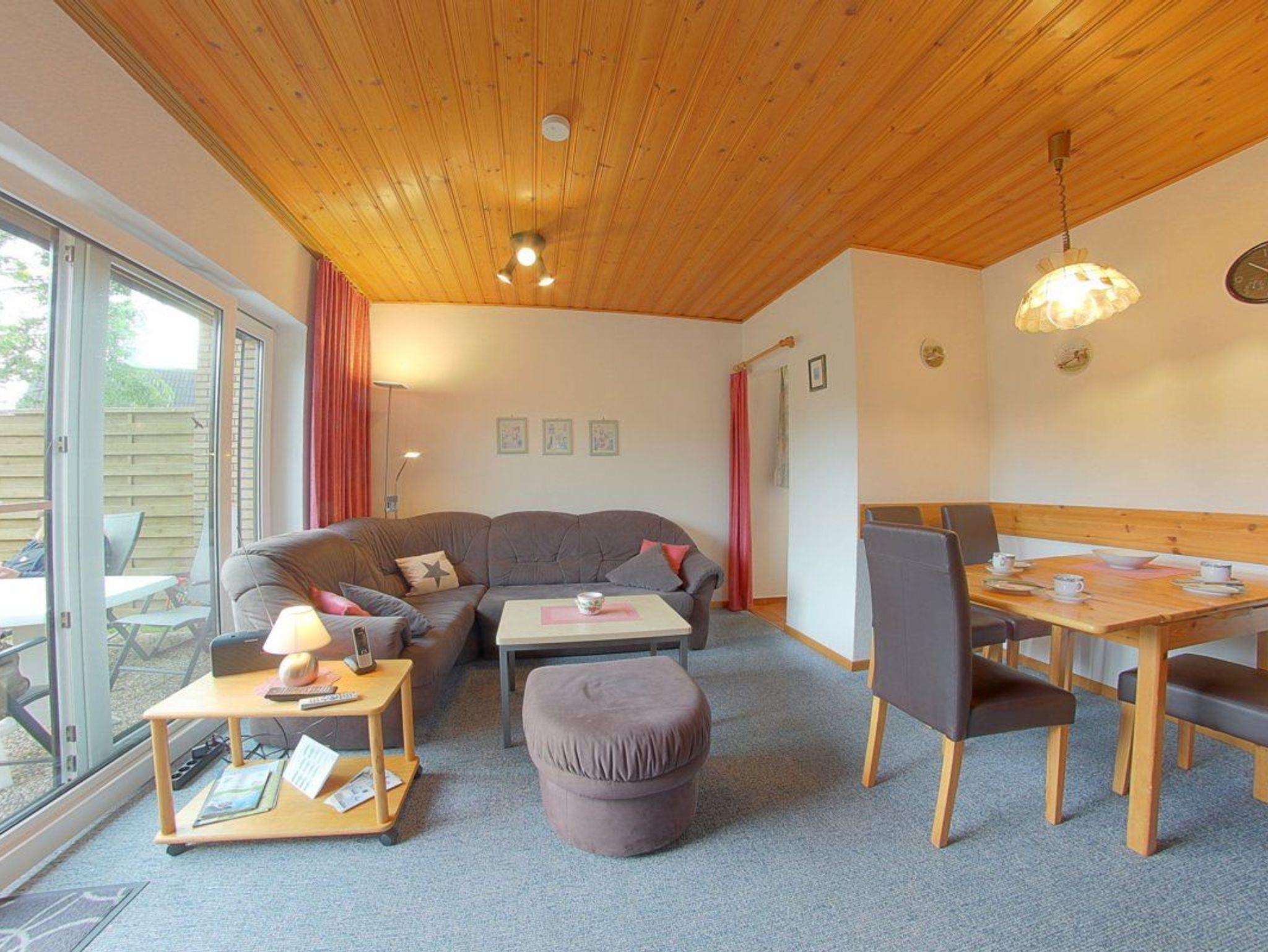 Das Haus verfügt über einen Wohnbereich mit Flachbild-TV, Sitzecke, Essplatz und eine kleine separate Küche mit E-Herd mit Backofen, Kühlschrank mit Gefrierfach, Kaffemaschine, Toaster und komplettem Geschirr.