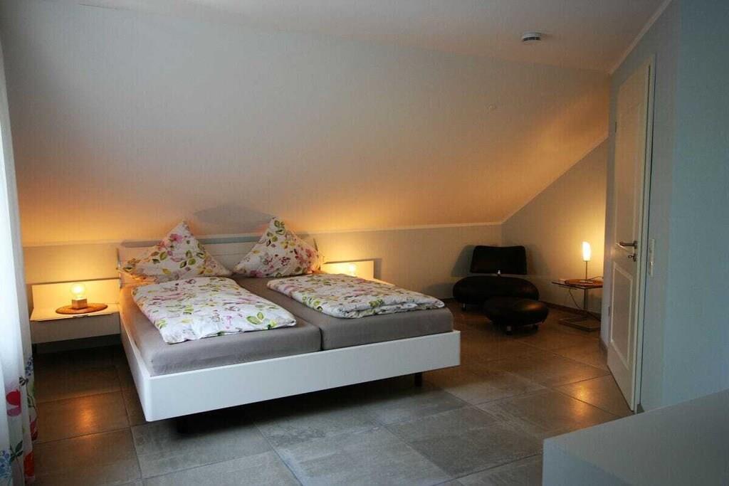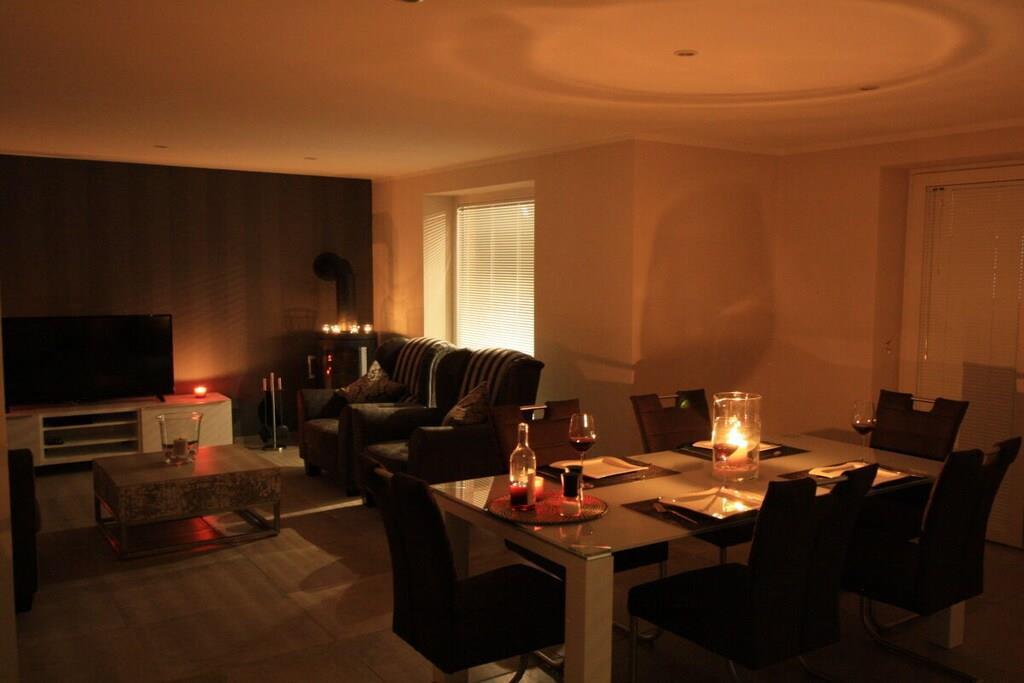 Das freistehende exklusive Ferienhaus ist in sonniger Südwestlage ruhig gelegen. Nicht weit vom Deich und dem Kutterhafen entfernt. Sie finden zwei große Schlafräume im Obergeschoss des Ferienhauses. Beide Schlafzimmer sind fast identisch ausgestattet. Sie finden in jedem Raum 1 Doppelbett 180 x 200, WLAN, und Flat Screen sind hier selbstverständlich. Das en-suit Bad ermöglicht diskrete Entspannung nach langen Strandspaziergängen, Fahrradtouren, Golfrunden oder einfach nach einem aktiven schönen Urlaubtag. Im Wohnraum finden Sie einen schönen Kaminofen den Sie nach Zeit und Lust genießen können. Das Holz und die Anzünder sind immer vorrätig im Haus vorhanden. Ein Flat Screen Großbild TV runden einen gemütlichen Fernsehabend ab.