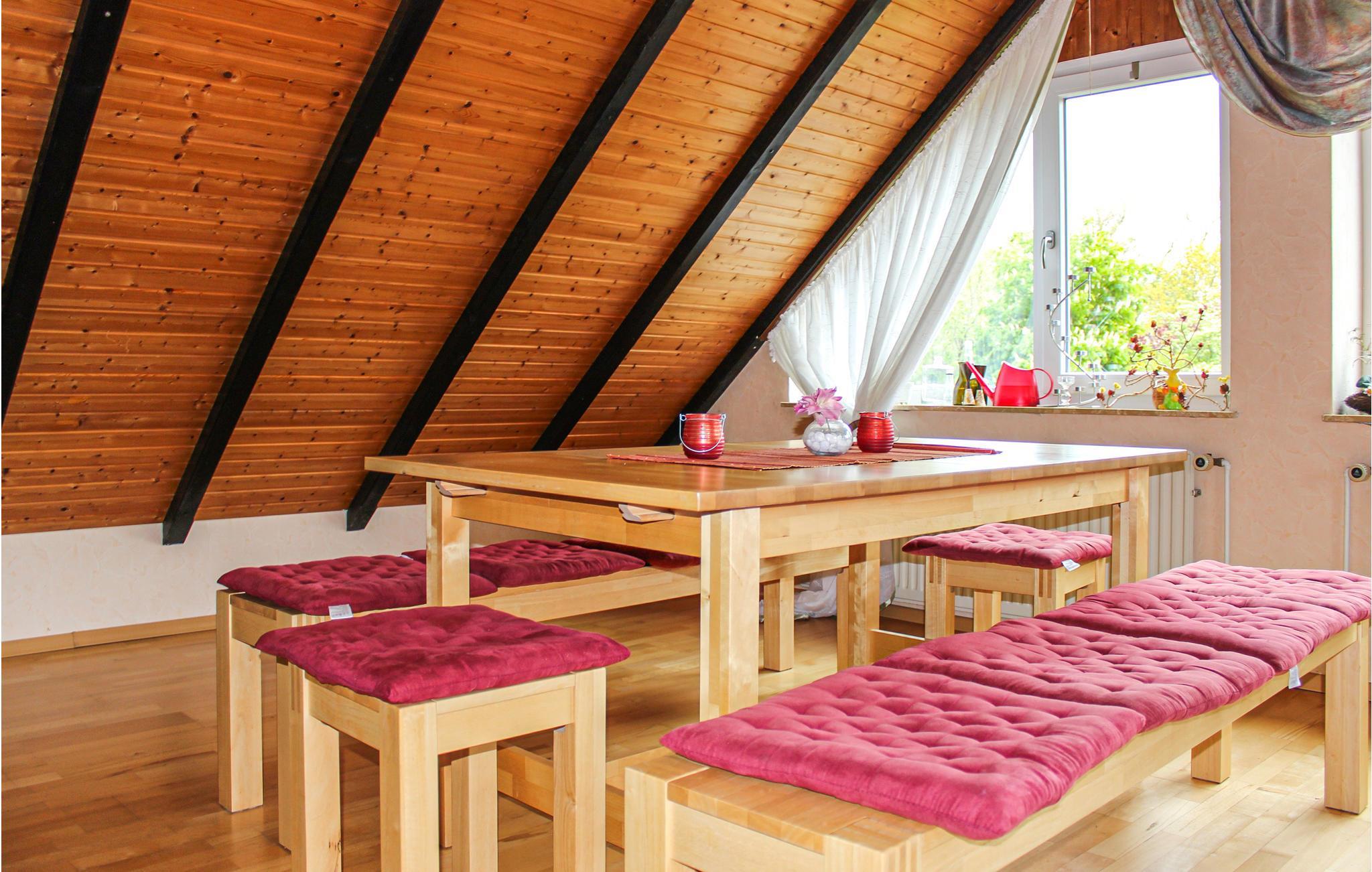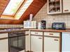 Lejligheden ligger på 1. sal og har skråloft. Det store soveværelse er indrettet med en dobbeltseng og en babyseng. I det andet soveværelse er der en enkeltseng. Op til fire ekstra senge er tilgængelige i den rummelige stue. Badeværelset er udstyret med vaskemaskine og badekar.