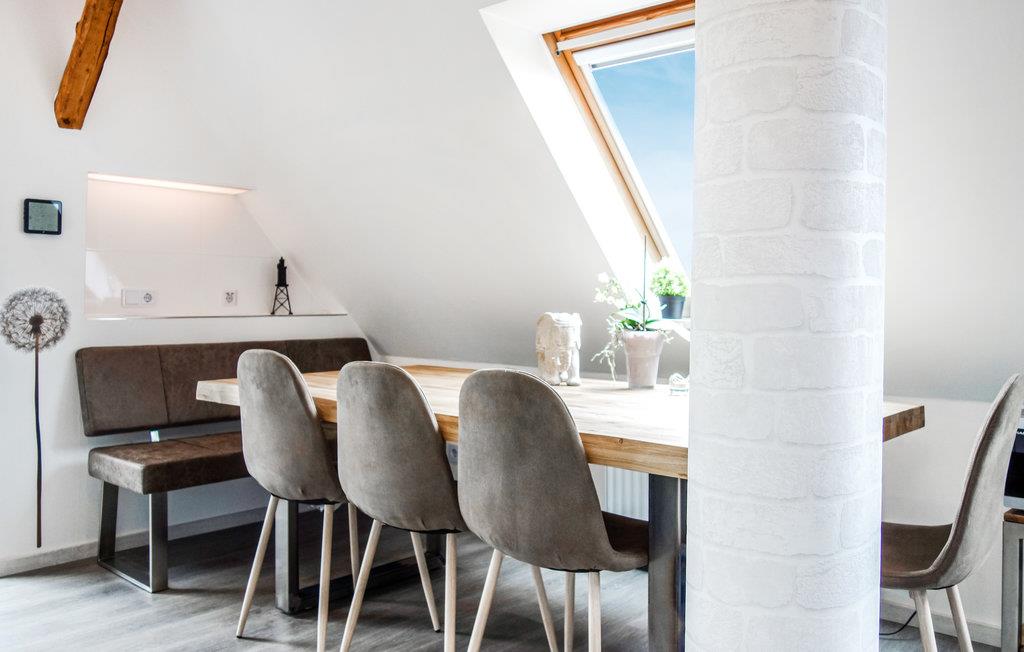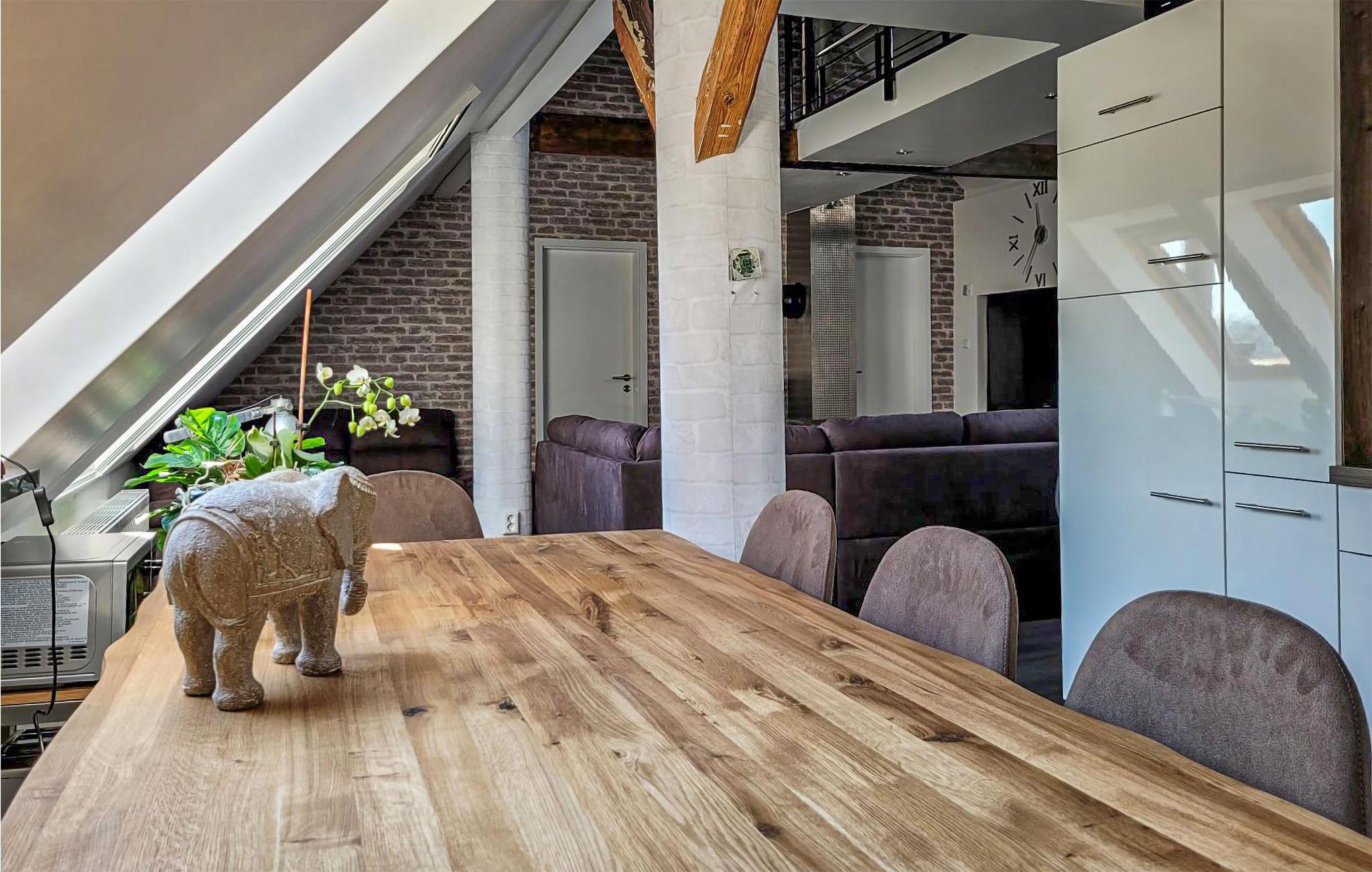 Stor loftslejlighed i to etager, placeret i marsklandet ved Wurster Nordsøkysten.