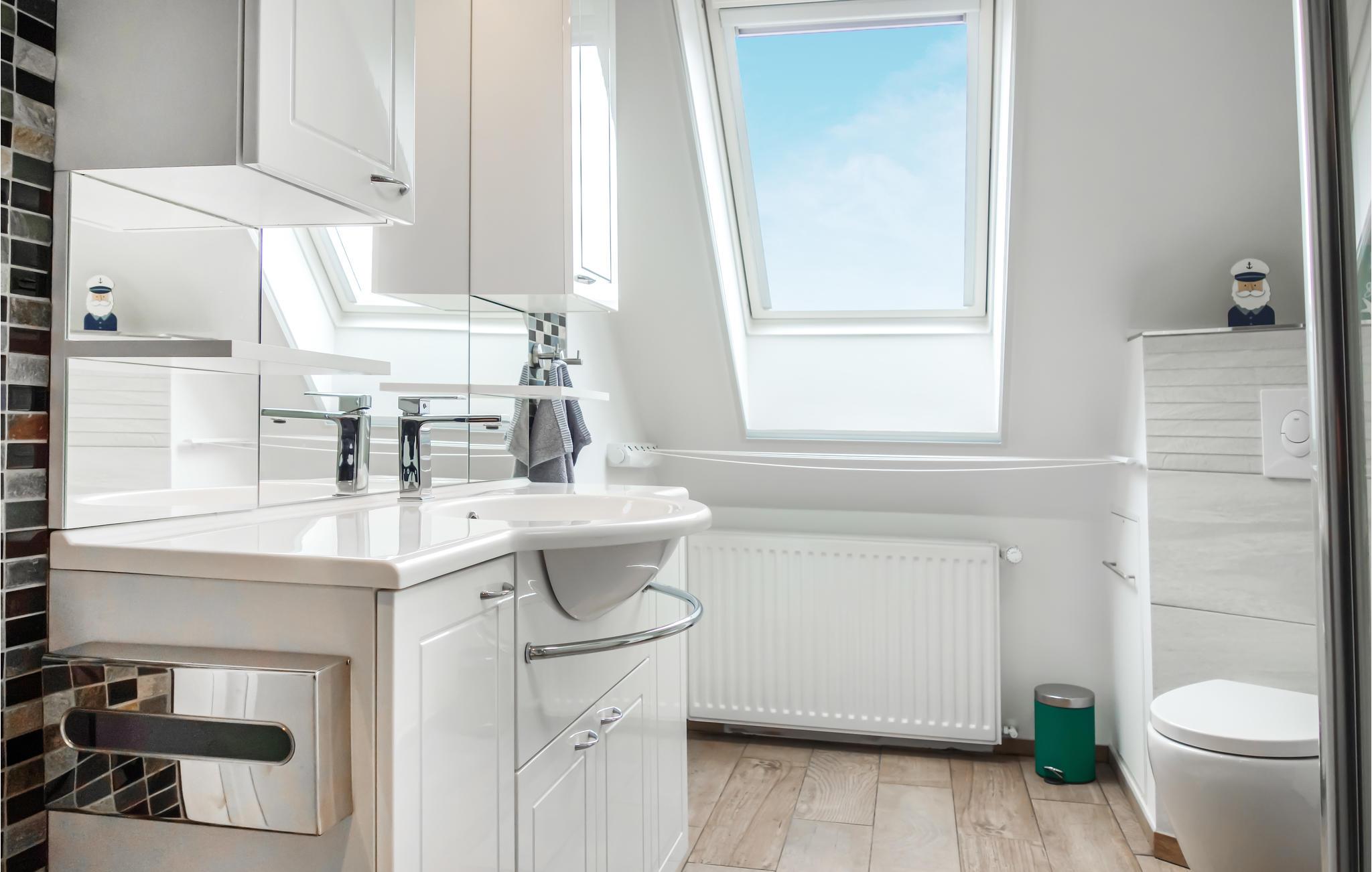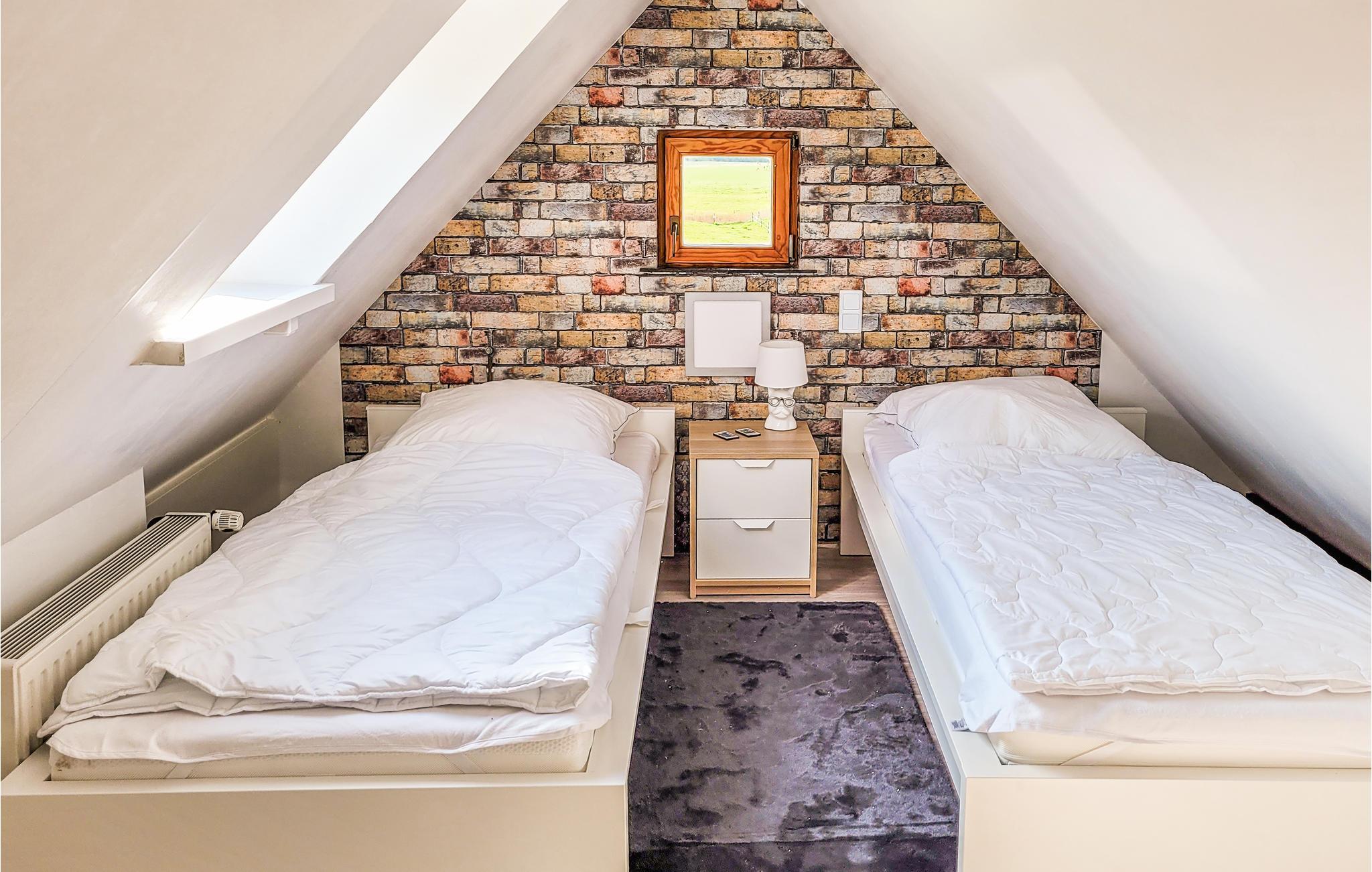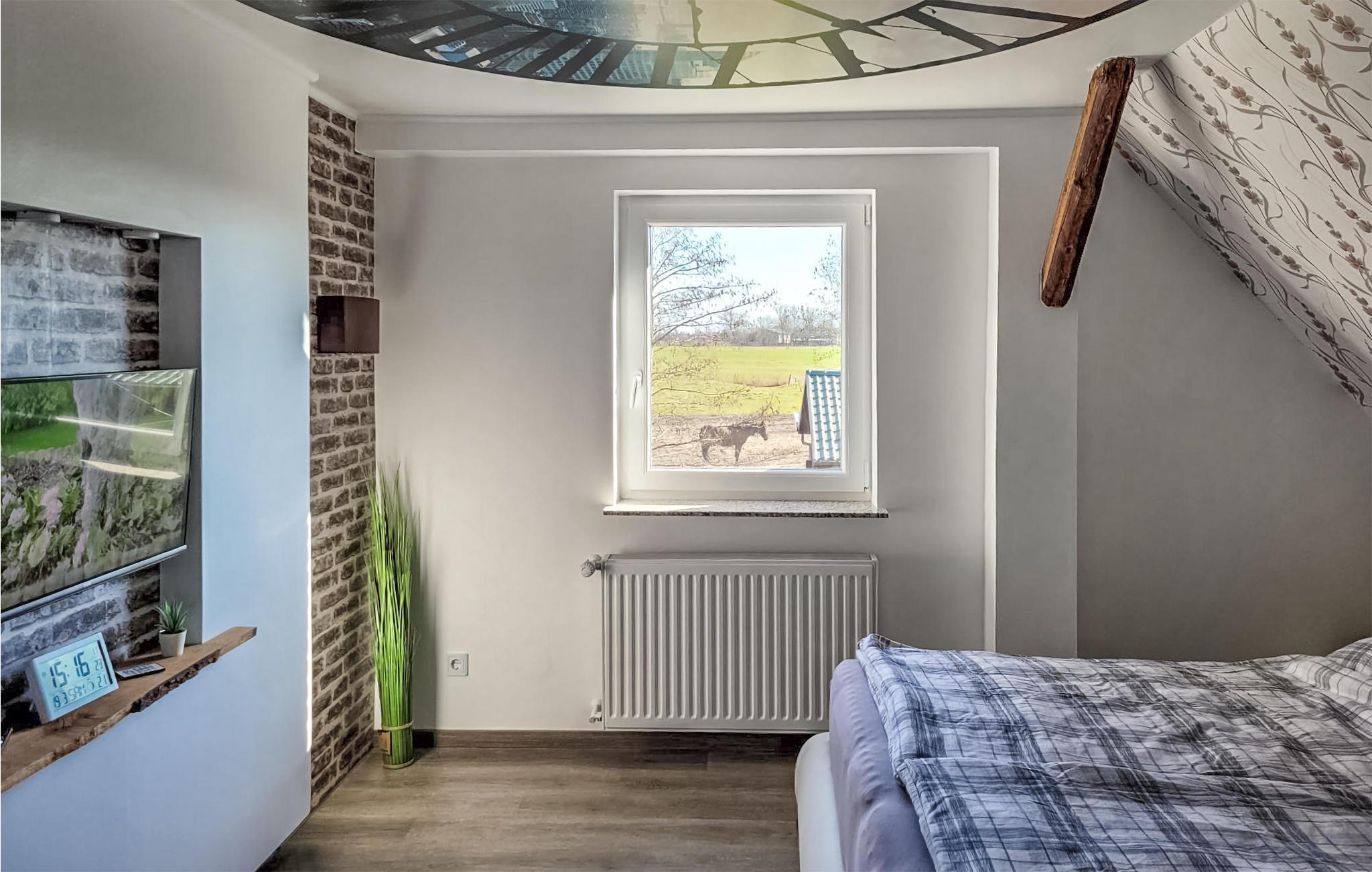 Den fine feriebolig gør med sin moderne atmosfære og gennemtænkte ruminddeling på to etager, der er forbundet med en stejl trappe, et flot indtryk. De synlige gamle træbjælker i loftet giver lejligheden et behageligt rustikt præg. Efter en kort køretur - enten i bil eller på cykel - kan I nå landsbyen Dorum, hvor I kan finde næsten alle faciliteter.