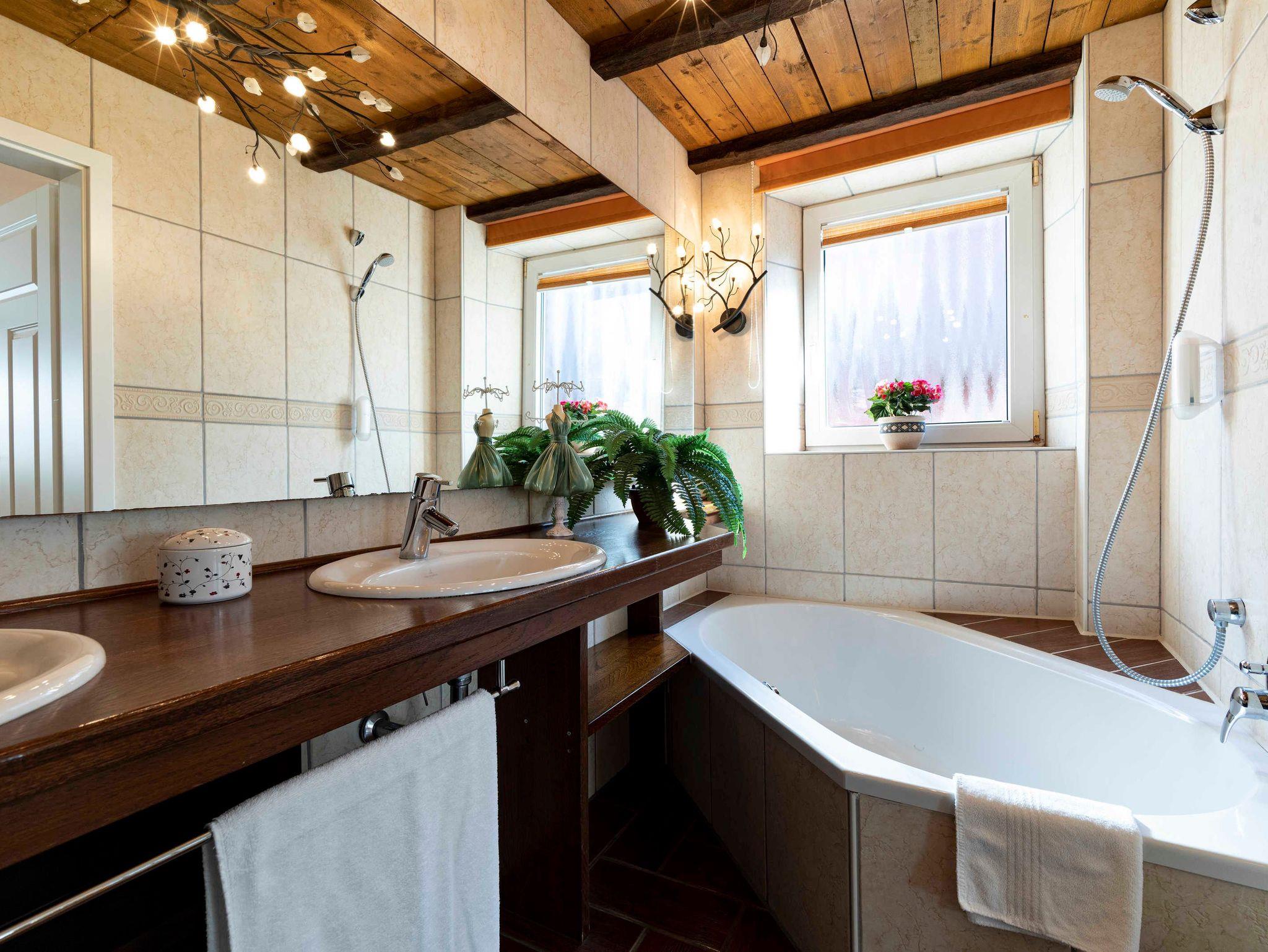 Im angrenzenden Tageslichtbad befindet sich eine großzügige barrierefreie Dusche.