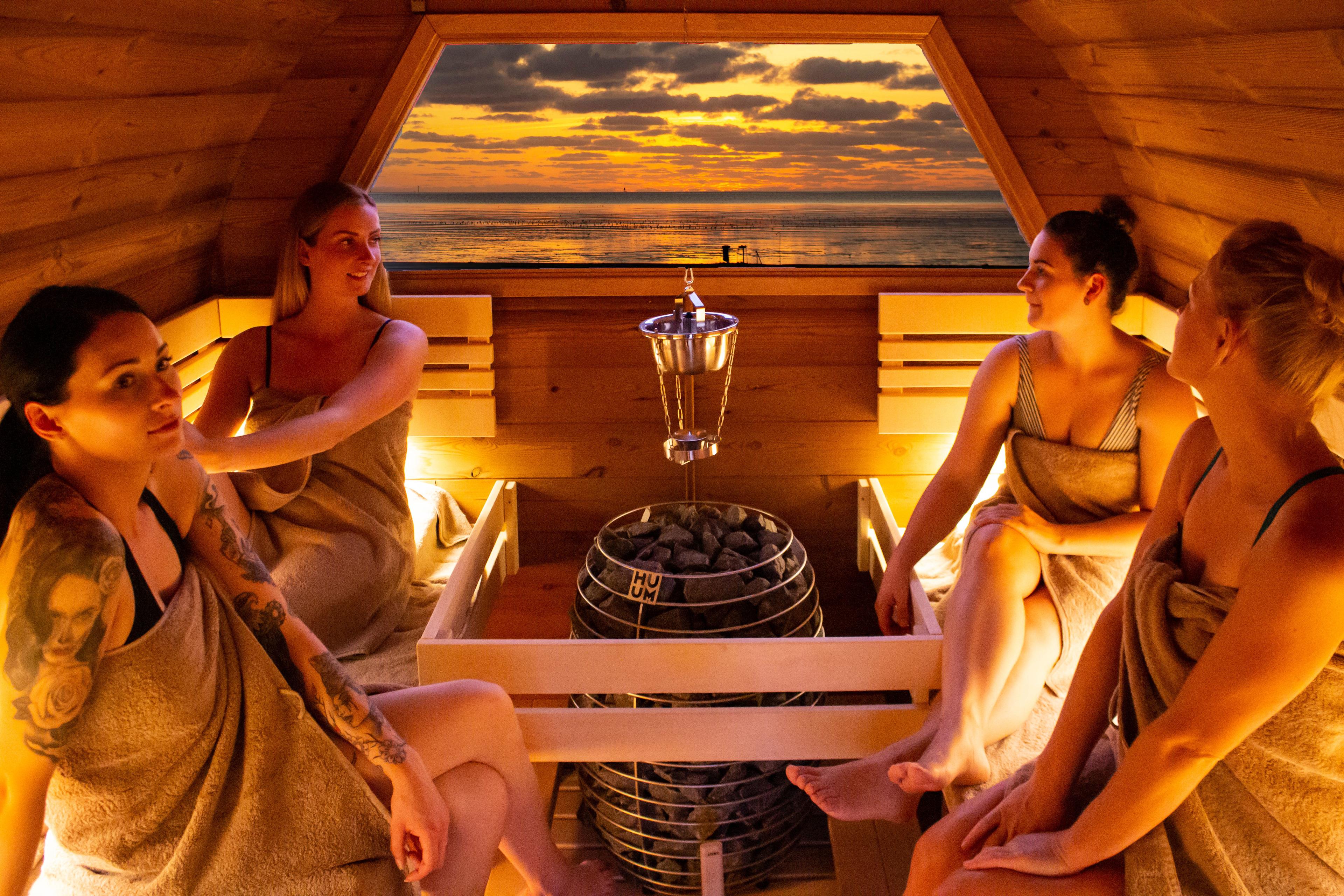 Und in der kalten Jahreszeit ist eine private Wellnessoase in einer exklusiven Fass-Sauna mit Blick auf das Wattenmeer buchbar .www. Exklusive Fass-Saunen.de