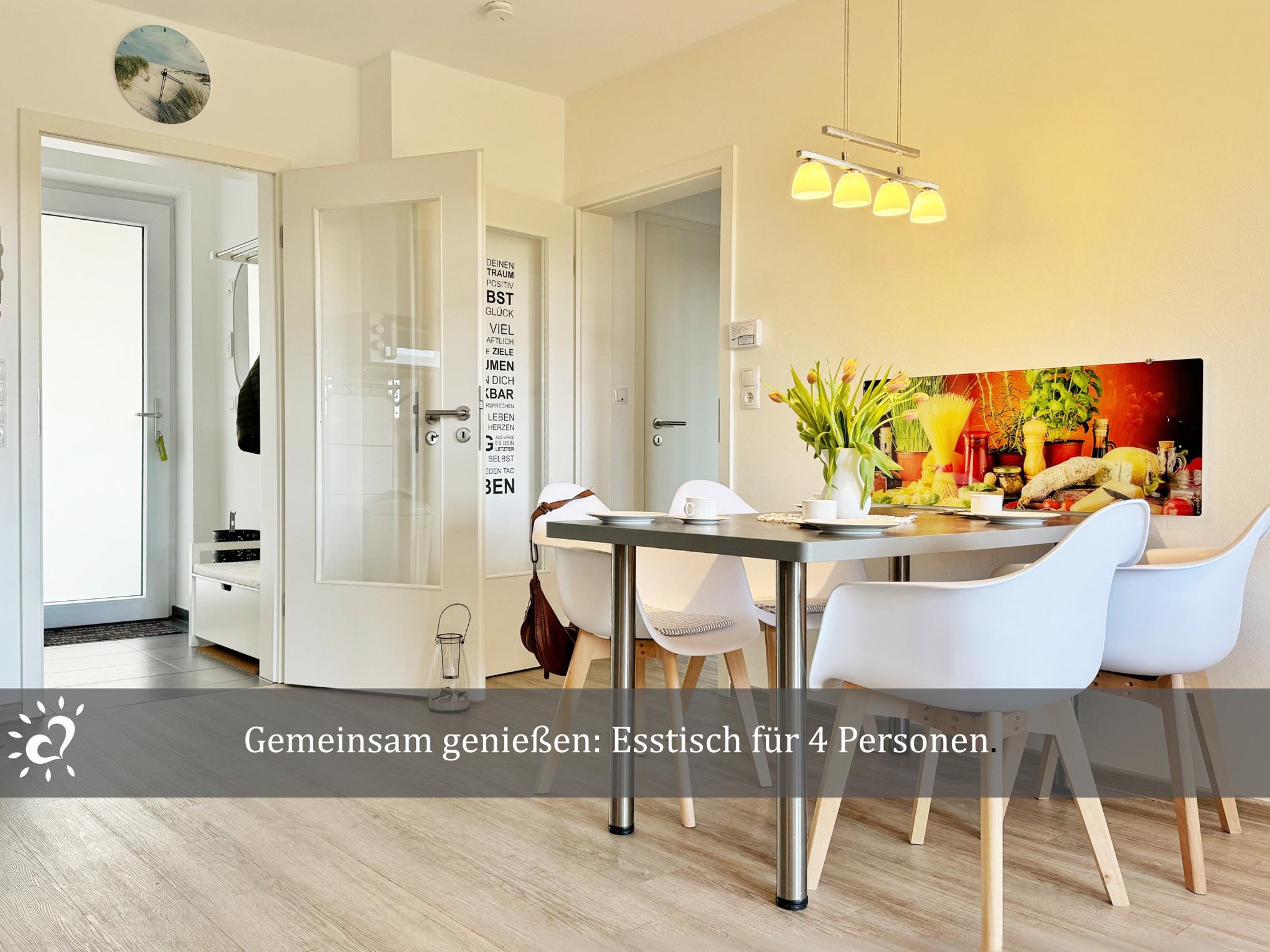 Der offene Wohn-/Essbereich lädt zum Relaxen ein, die voll ausgestattete Küche begeistert Hobbyköche.