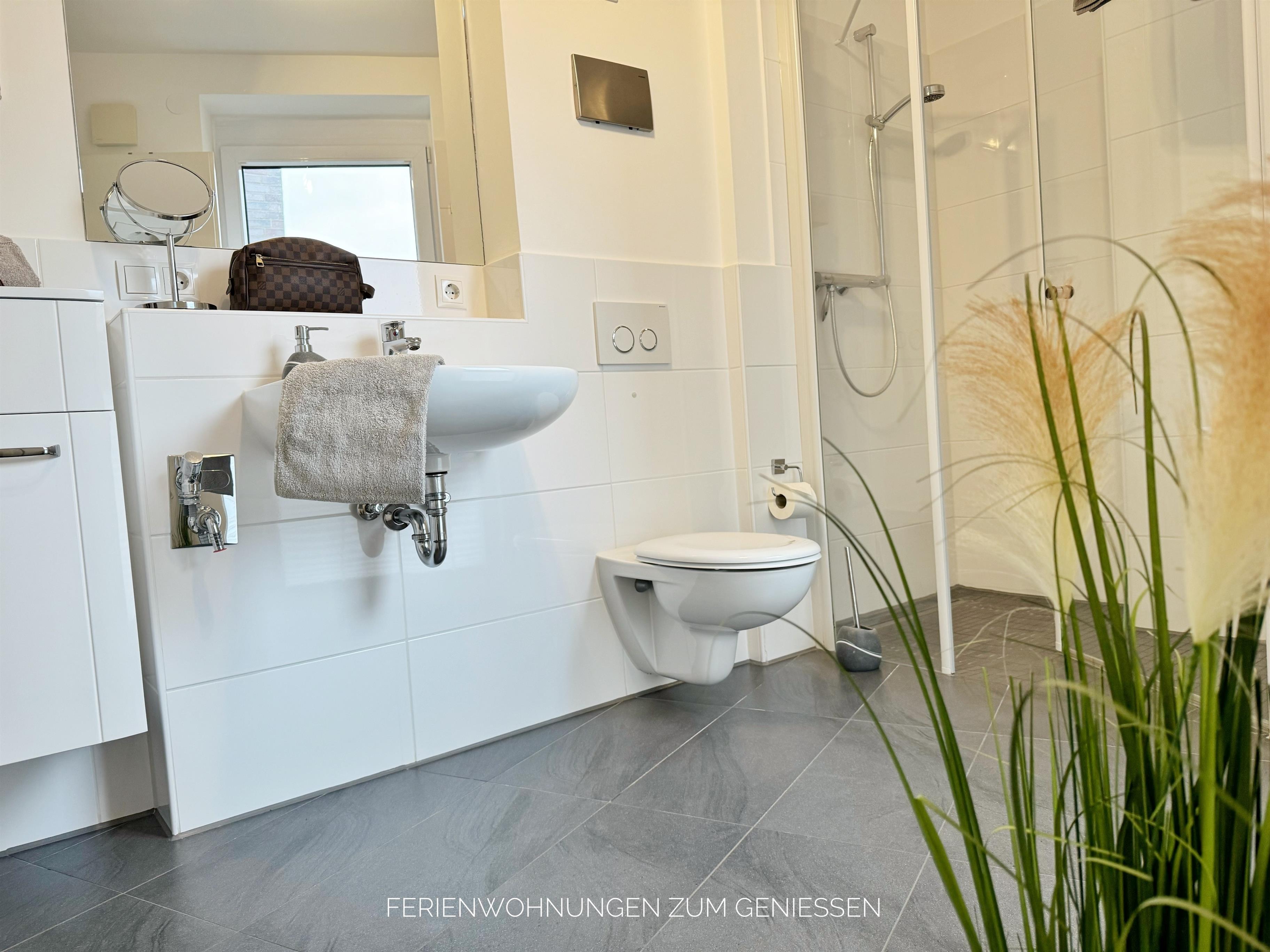Das moderne "Wohlfühl-Bad" überzeugt mit seiner großzügigen, bodenebenen Dusche - perfekt, um nach einem erlebnisreichen Tag abzuschalten. Ein echtes Highlight ist der zweite Balkon direkt am Schlafzimmer: Starte den Tag mit den ersten Sonnenstrahlen und einer heißen Tasse Kaffee in der Hand!
