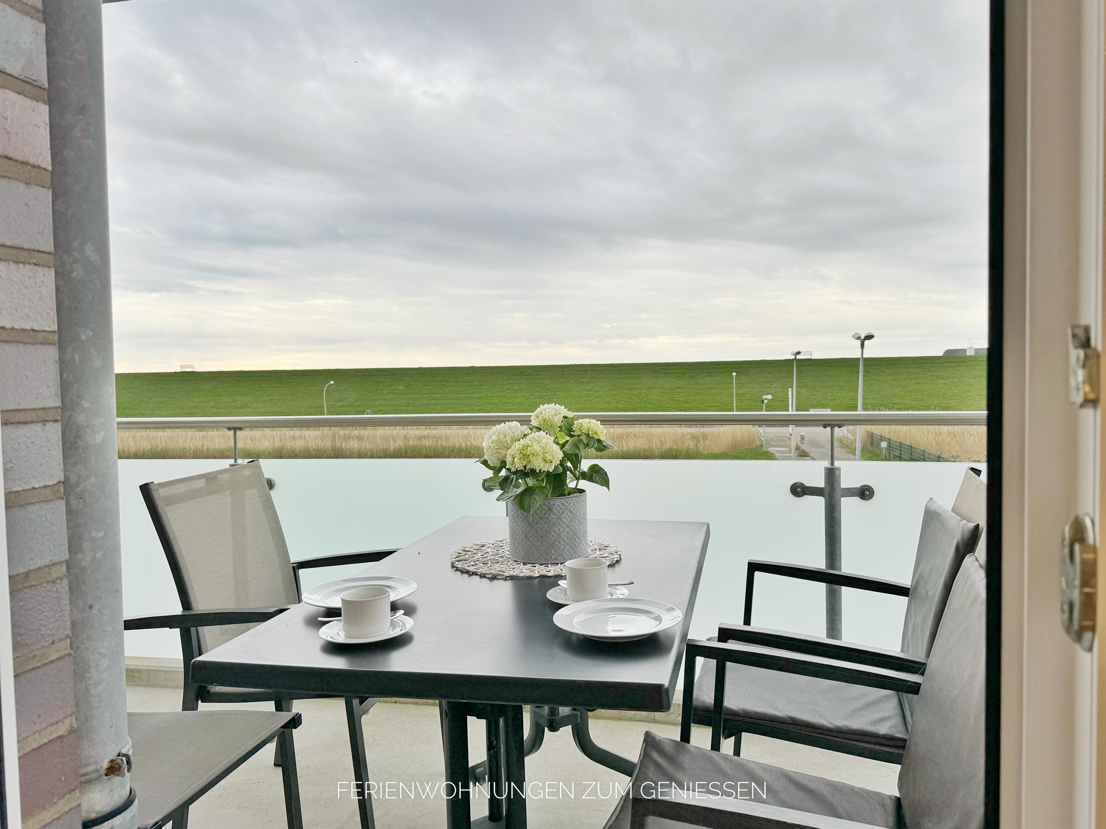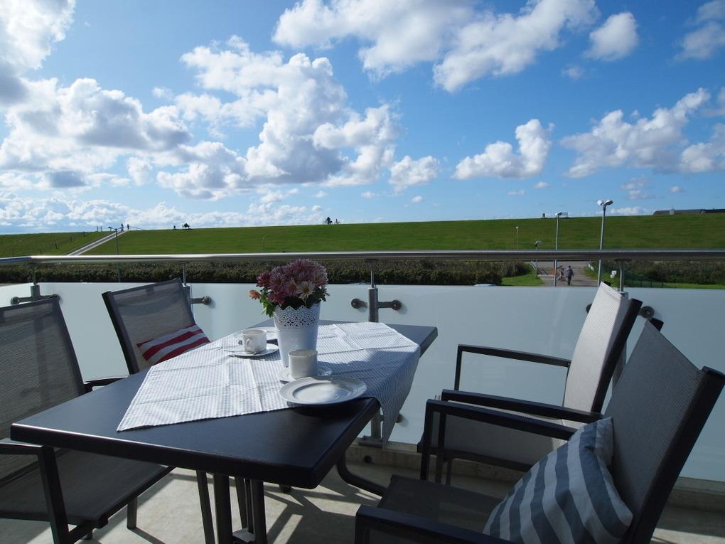 Es gelingt leicht zu Entspannen auf dem großzügigen Balkon. Von dieser 1aLage hat man eine perfekte Sicht auf die endlos erscheinende Deichline.