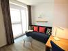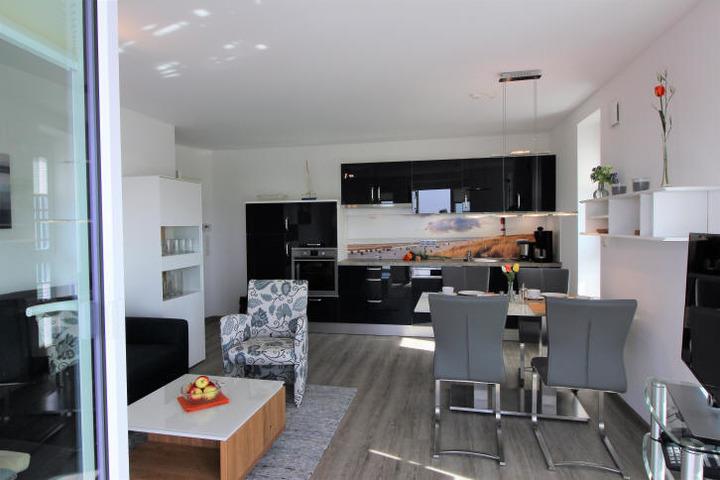 Im Wohnzimmer ist eine hochwertige Küche integriert, die komplett ausgestattet ist (z.B. mit Mikrowelle, Backofen, Toaster, Gläser, Geschirr, Eierkocher, Ceran-Kochfeld, Kaffeemaschine, Geschirrspüler.... Ein großer Flachbildschirm im Wohn- sowie im Gästezimmer sorgt für mediengerechte Unterhaltung.