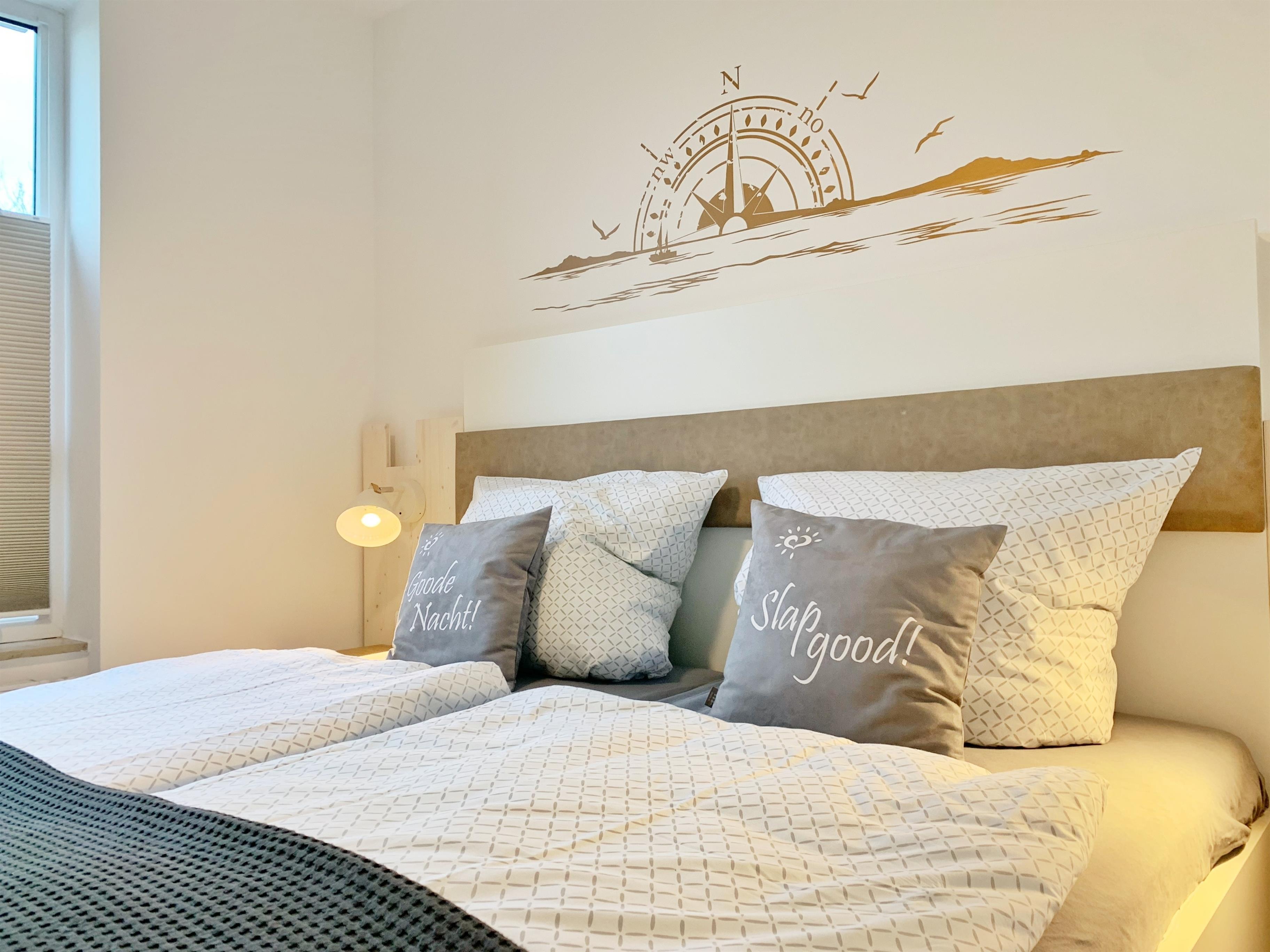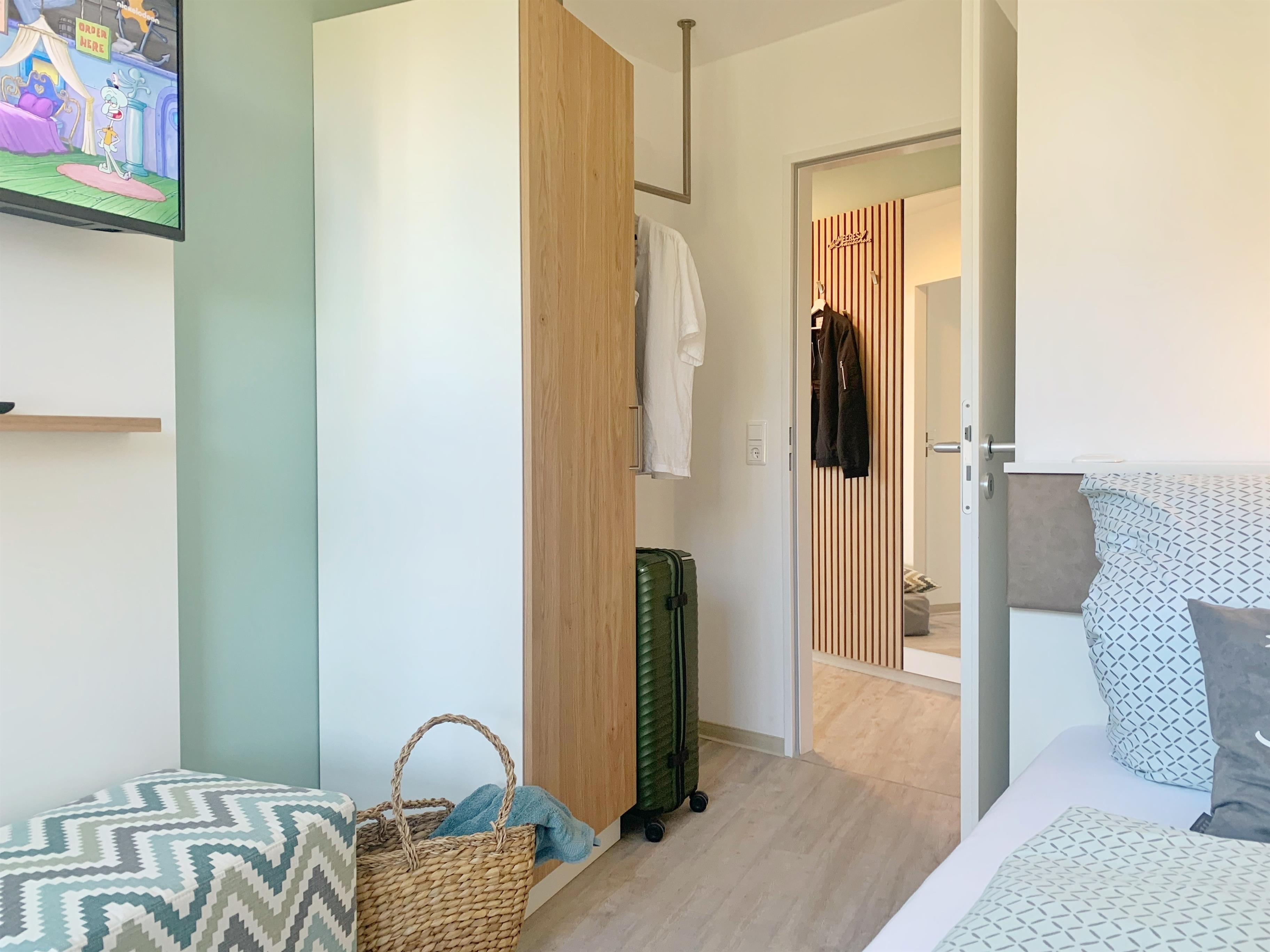 Die exklusive Einrichtung ist mit dem Hochwertigsten ausgestattet. Zum Schlafen steht ein Doppelbett 180 x 200 und im Nebenzimmer 90x200 zur Verfügung. Beide Schlafräume sind zusätzlich mit einem Fernseher (Streaming erlaubt) ausgestattet. Im Wohnbereich steht ein Funktionssofa