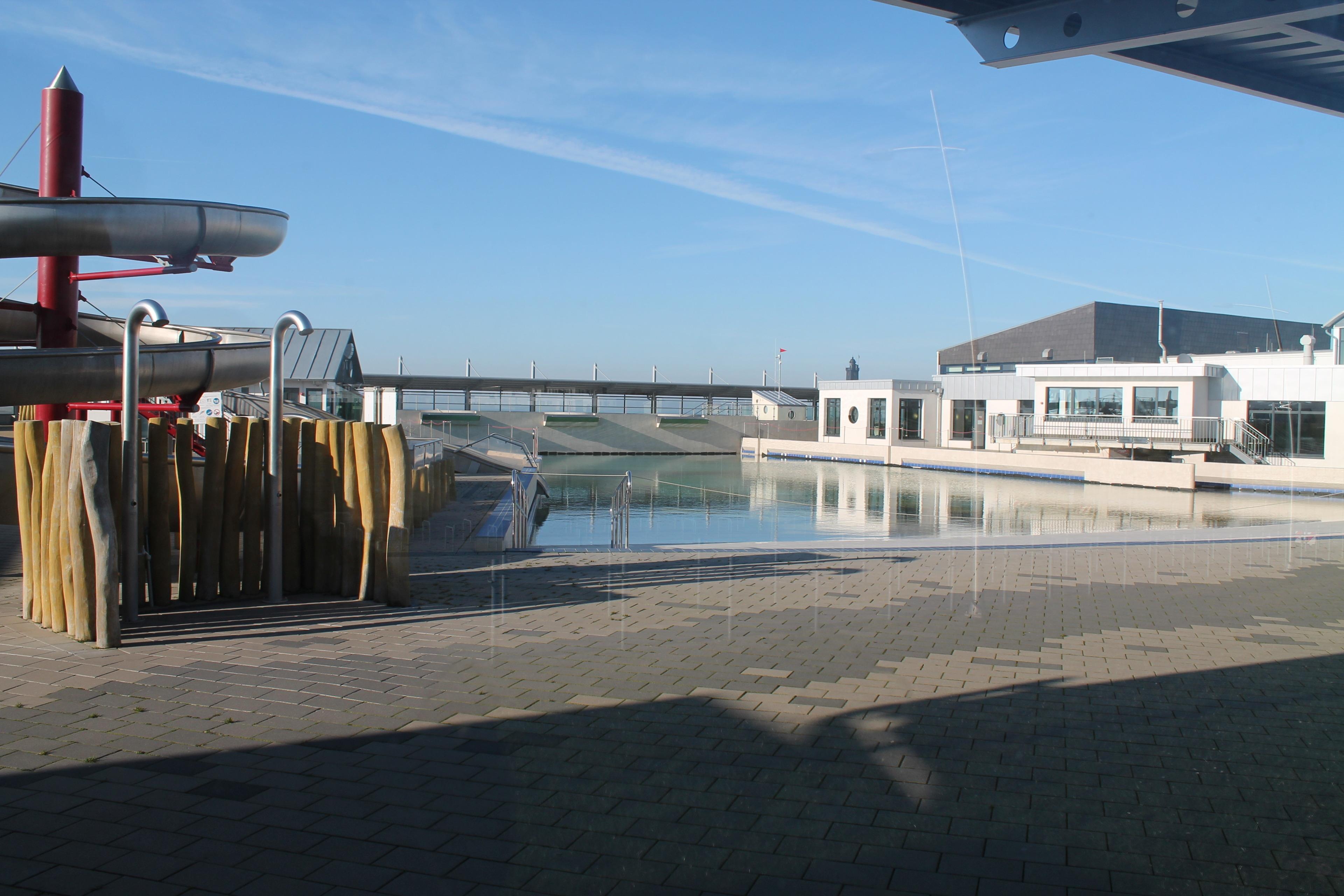Im Schwefelsole-Wellenfreibad direkt am Grünstrand mit 2 Wasserrutschen und überdachtem Kleinkinderbecken und Wellness-Bad kann auch gebadet werden, wenn die Nordsee Ebbe hat.