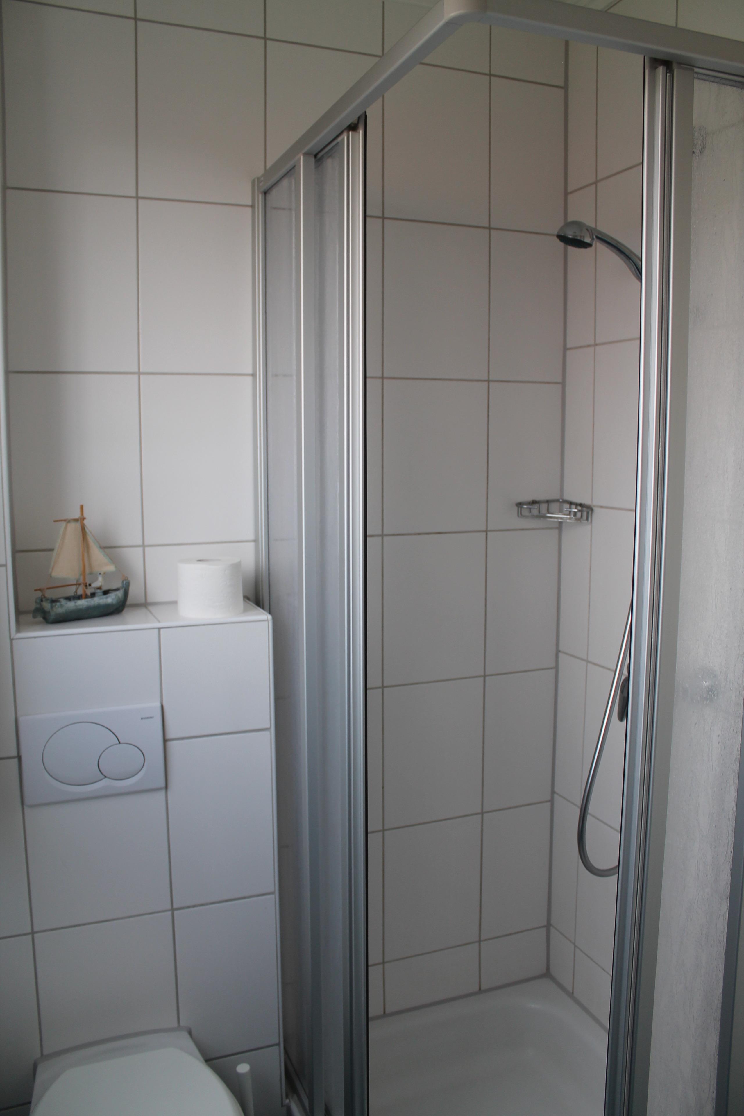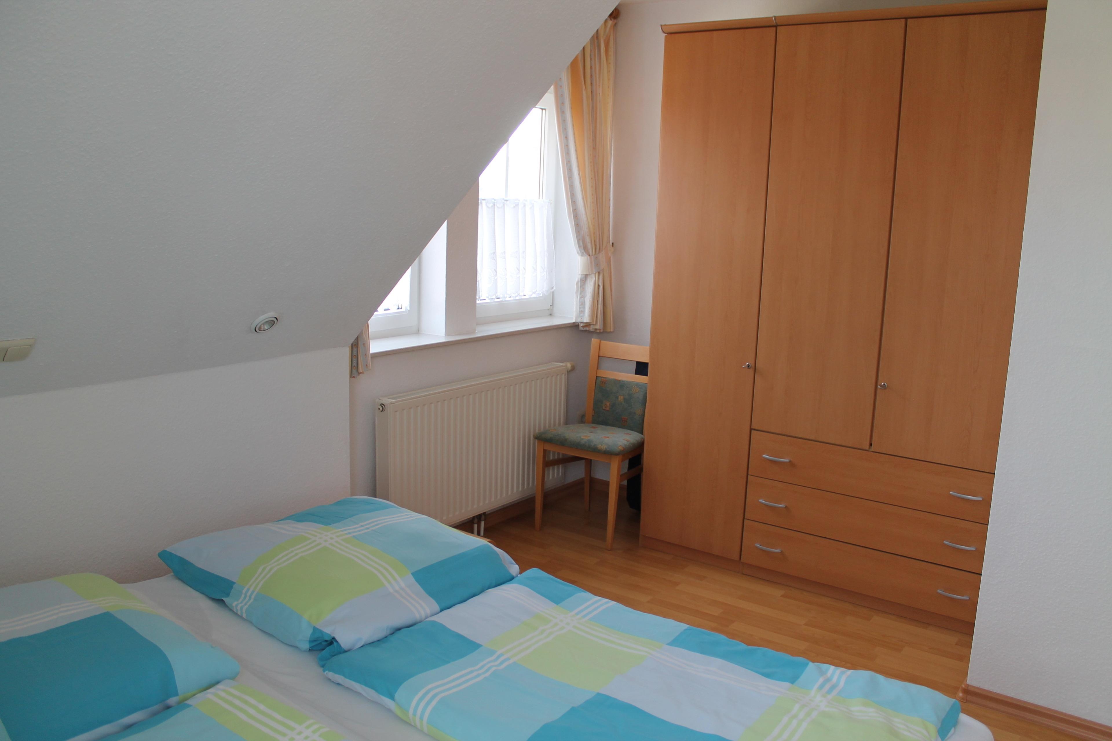 Zwei Schlafzimmer, sowie ein modernes Duschbad mit Fenster befinden sich im Obergeschoß.
