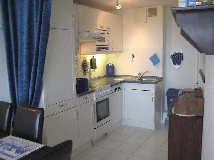 Geboten wird ein Wohnzimmer mit Küche (Geschirrspüler, Waschmaschine) und ein Schlafzimmer mit Doppelbett