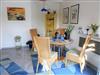 Vom großzügigen Wohn-Essraum geht es direkt zur Terrasse in Südlage. Eine separate Küche, ein Zimmer mit Doppelbett, ein Einzelzimmer, ein Bad (Fön/Personenwaage) mit Dusche und WC runden die Aufteilung ab. Leider kann aus Platzgründen ein Kinderreisebett nicht aufgestellt werden.