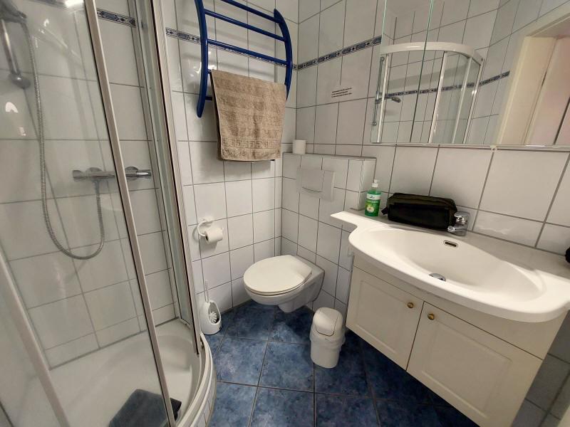 Bügeleisen und Bügeltisch stehen zur Verfügung. Modern eingerichtetes Bad. 1 Schlafzimmer mit