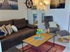 Haus Sonnenstrahl Nr.5 in Dorum-Neufeld, im Sommer mit Strandkorb am Strand (Mai - Mitte Sepüt). Erdgeschoss.