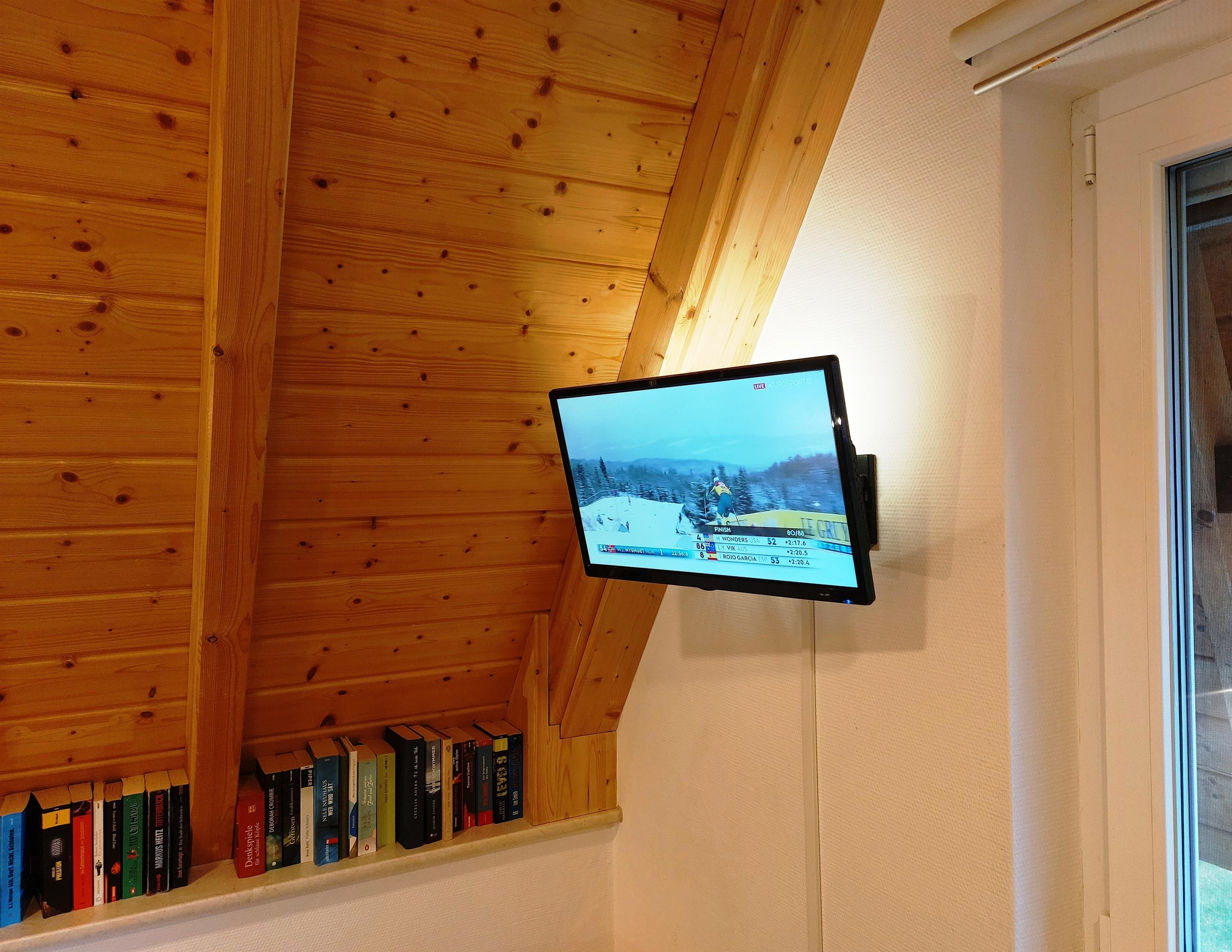 Im Wohnbereich befindet sich in Flachbild-Fernseher mit DVD-Player eine Spielekonsole sowie einer Musikanlage mit Bluetooth. Klassische Spiele stehen auch bereit.