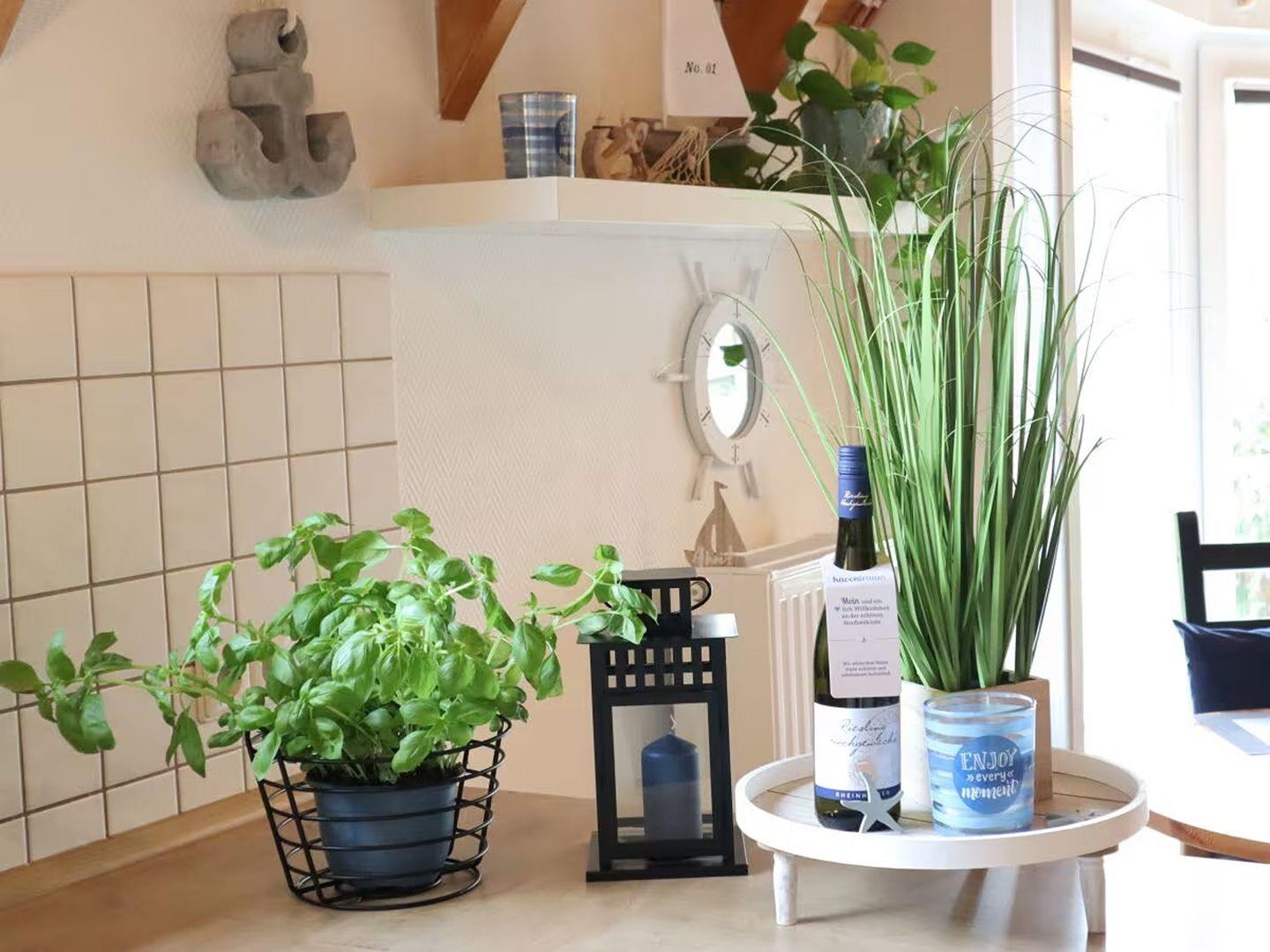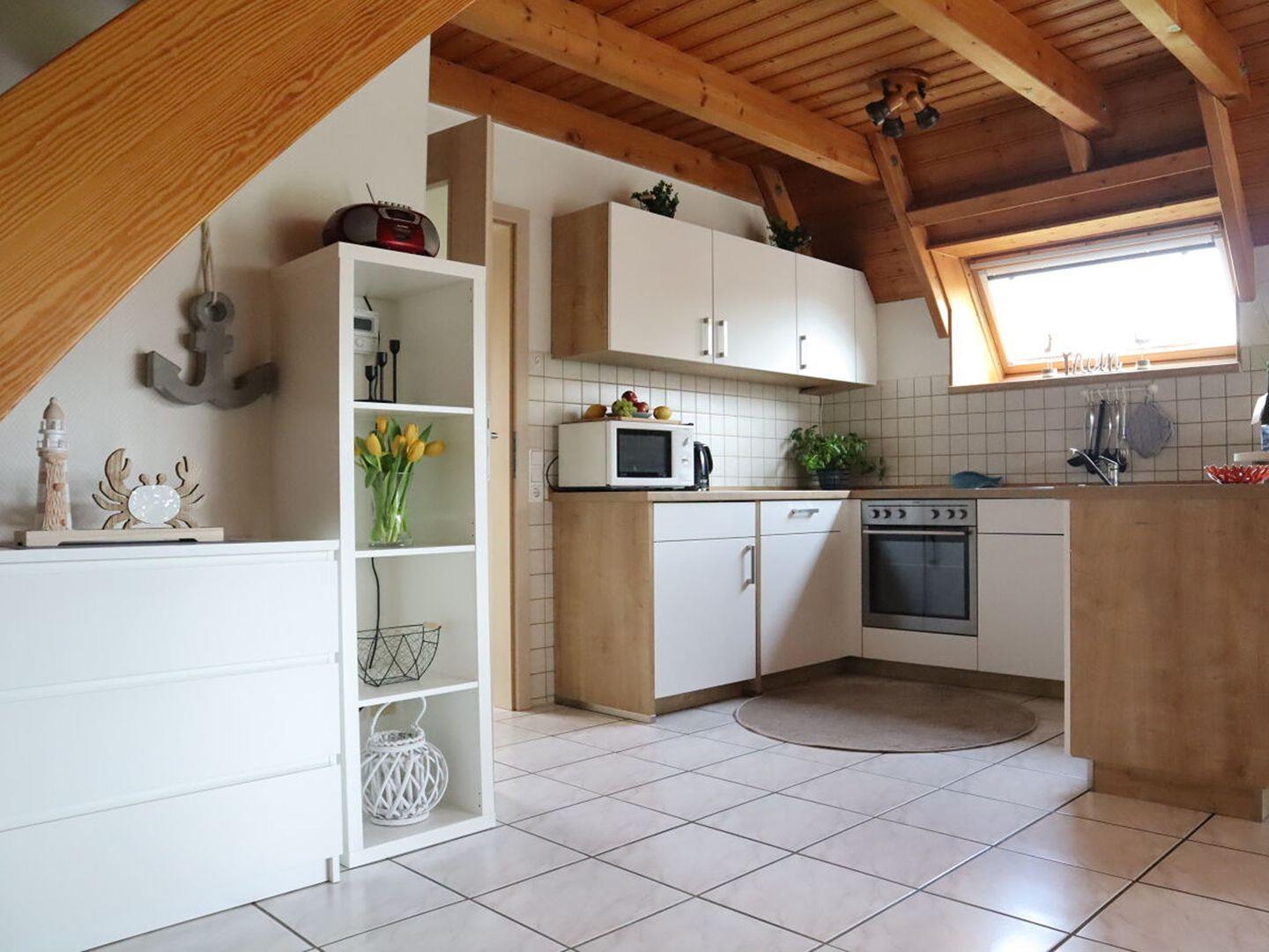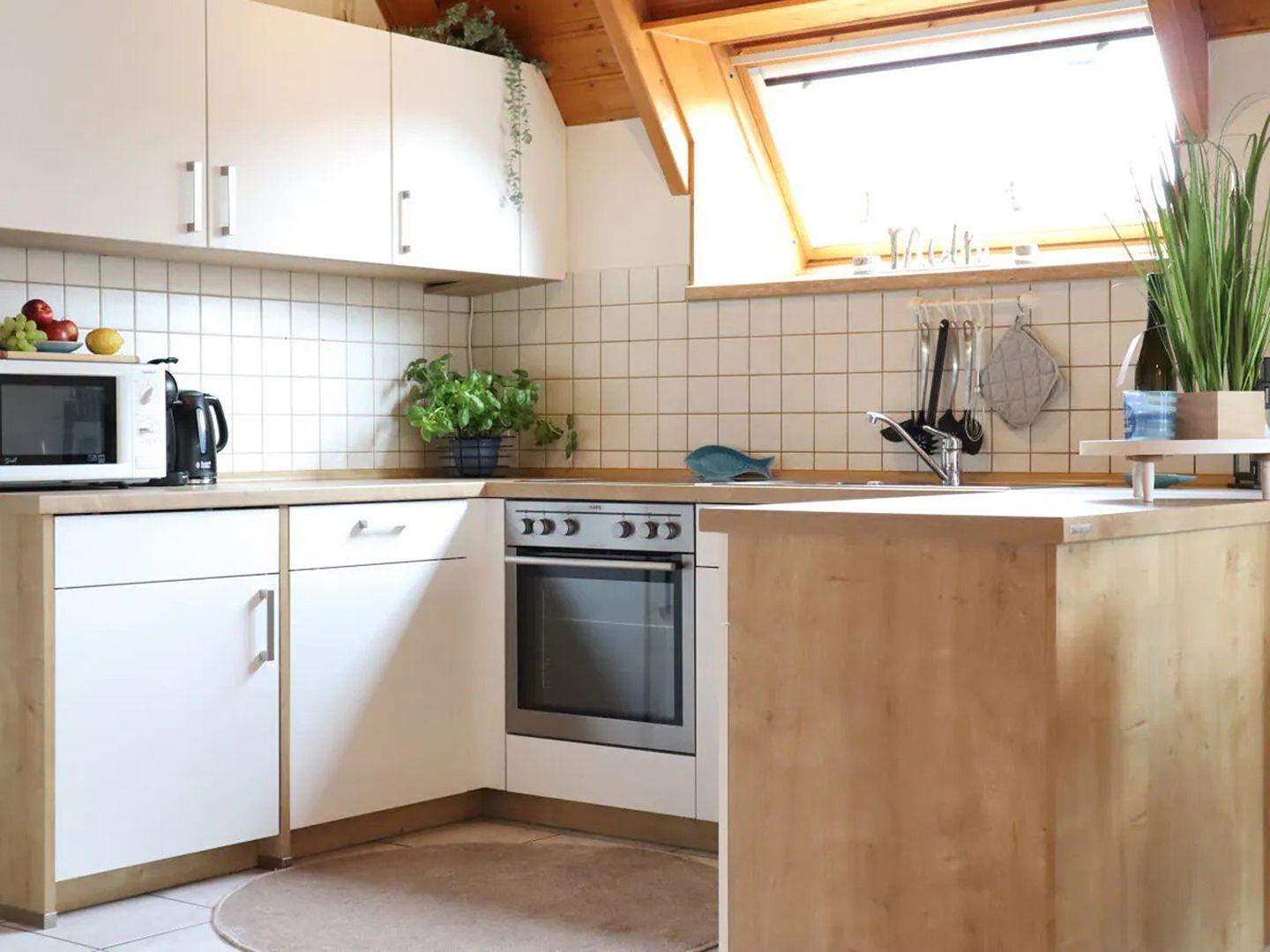 Eine voll ausgestattete Küche und ein helles, modernes Bad runden das harmonische Ambiente ab.