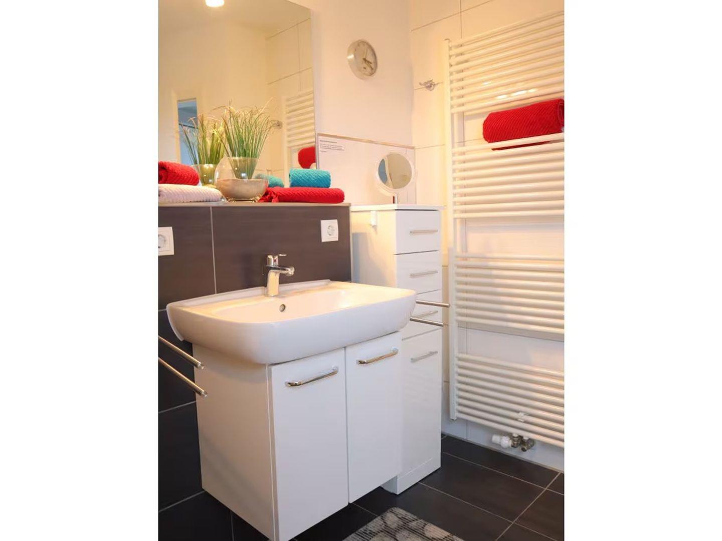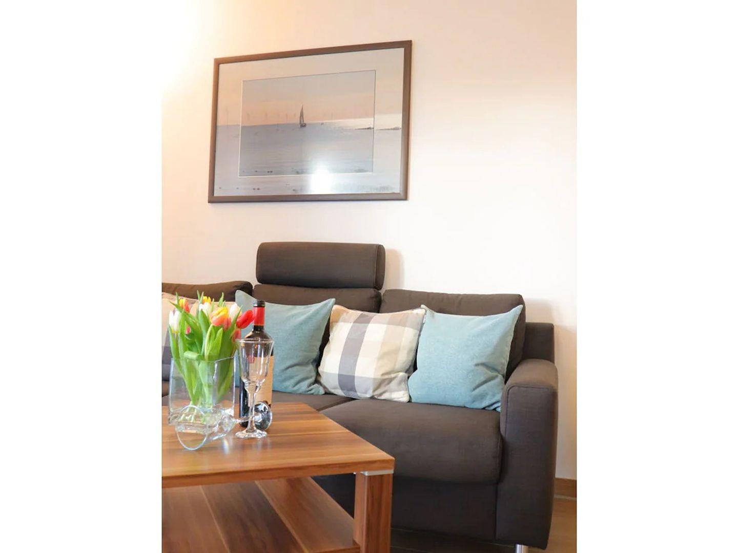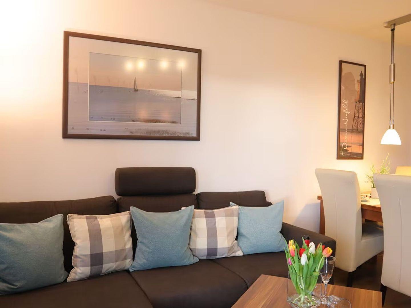 Das Apartment "Sonnenbogen" verspricht ein entspanntes Nordseeerlebnis im Herzen einer ruhigen Ferienanlage, nur einen Steinwurf vom Nordseedeich entfernt. Auf dem 1. Obergeschoss gelegen, bietet es auf großzügigen 68 qm² Platz für bis zu 4 Personen und ein vierbeiniges Familienmitglied. Die Einrichtung ist modern und hochwertig, mit Liebe zum Detail gestaltet.