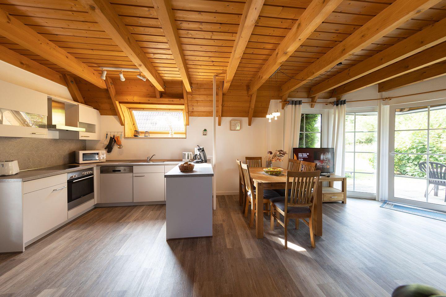 Mit sechs Schlafplätzen und viel Raum ist das Ferienhaus Tegeler Plate 02 in Dorum-Neufeld ideal für den Nordseeurlaub mit Kindern. Auf 68 m² über zwei Etagen erwarten dich zwei Schlafzimmer, ein Bad mit Wanne und Dusche sowie ein Wohnzimmer mit Kaminofen. Die offene Küche mit Spülmaschine, Ceranfeld und Mikrowelle ist bestens ausgestattet – perfekt für Familienzeit am Meer.