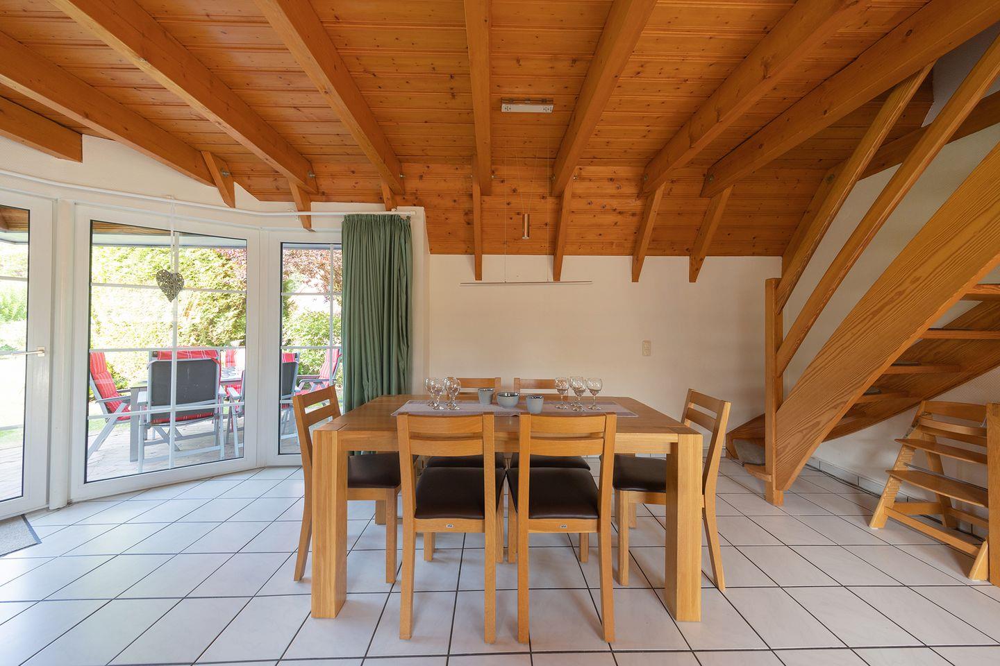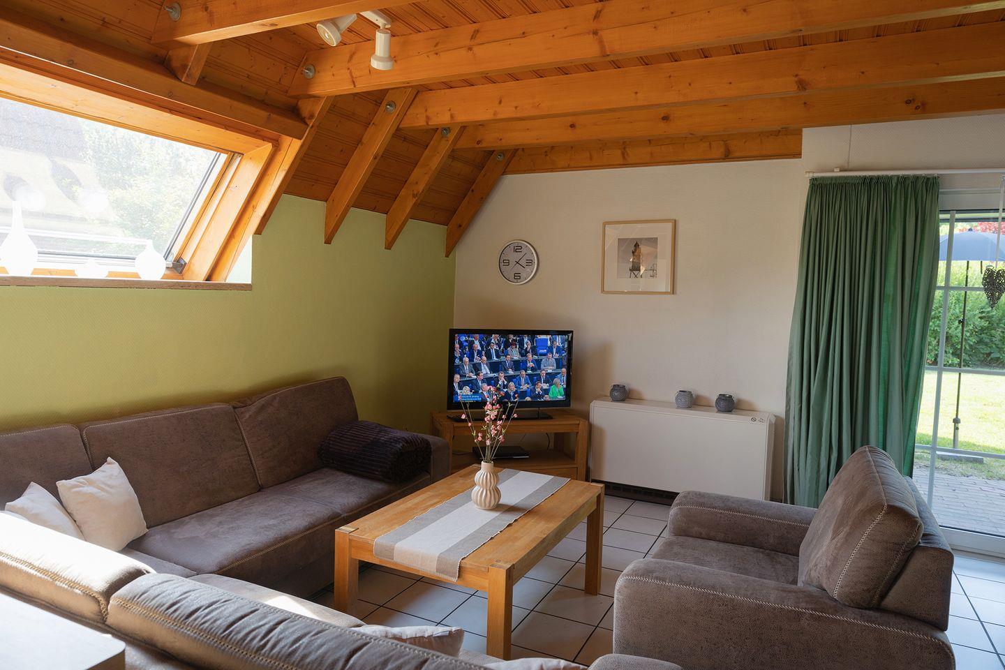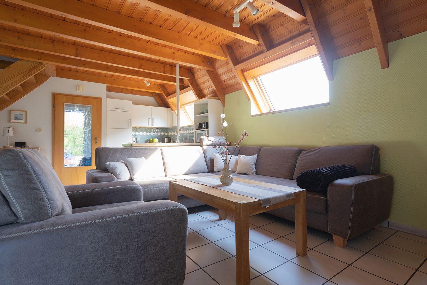 Ein Morgen mit Blick ins Grüne, die Kleinen spielen schon draußen: Das Ferienhaus Knechtsand?34 in Dorum-Neufeld ist wie gemacht für Nordseeurlaub mit Kindern. Auf zwei Etagen bietet es 68?m² mit zwei Schlafzimmern, einem Wohnbereich, je einem TV im EG und OG sowie einer offenen Küche mit Spülmaschine, Induktionsherd und Mikrowelle, einem taghellen Bad mit Dusche/WC und einem extra WC im OG – alles für entspannte Tage.