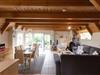 Der offene Wohnbereich im Erdgeschoss ist gefliest, hell und einladend. Sofaecke, Essplatz, Kaminofen und Fußbodenheizung sorgen für Behaglichkeit. Die Küche ist voll ausgestattet: Ceranherd, Spülmaschine, Backofen, Mikrowelle, Kaffeemaschine, Mixer und mehr stehen bereit. Zwei Schlafzimmer mit Vinylboden liegen im Obergeschoss. Das Bad mit Dusche, Wanne und Fenster wird durch ein Gäste-WC ergänzt – praktisch für den Familienalltag.