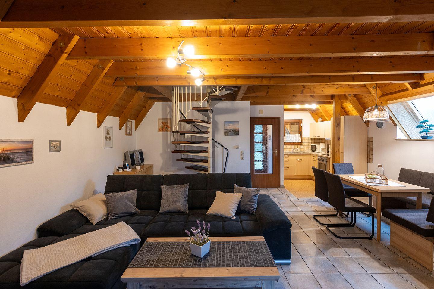 Das frei stehende Ferienhaus in Dorum-Neufeld an der Nordsee bietet auf 68?m² über zwei Etagen Platz für bis zu sechs Personen – ideal für Familienzeit am Meer. Der Wohnbereich mit Kaminofen geht offen in die Küche über, zwei Schlafzimmer mit Laminatboden bieten Raum für erholsamen Schlaf. Das Bad ist mit Dusche, Wanneneinstieg und WC ausgestattet. Kinderbett, Hochstuhl, Treppengitter und Spiele sind vorhanden. Ein rundum familienfreundliches, allergikerfreundliches Haus für deinen Nordseeurlaub mit Kindern.