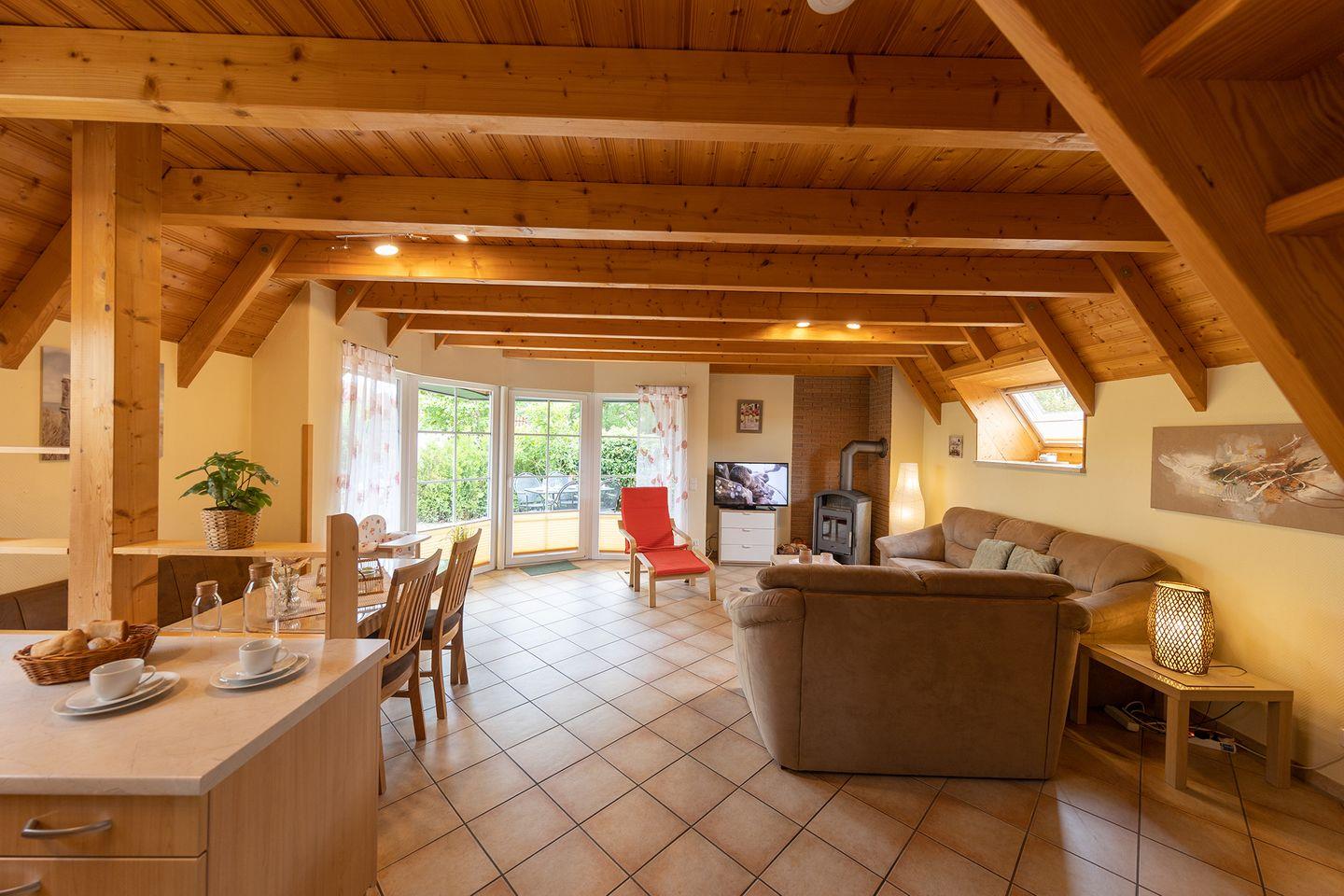 Barfuß auf der Terrasse, den ersten Kaffee in der Hand und dabei dem Möwengekreisch lauschen – im Ferienhaus „Deichsonne“ in Dorum-Neufeld beginnt der Tag ganz nordseetypisch. Auf 68?m² finden vier Personen und bis zu zwei Hunde reichlich Platz: Zwei separate Schlafzimmer, ein gemütliches Wohnzimmer mit Kaminofen und eine offene Küche machen das Haus zu einem echten Ferienhaus für Familien an der Nordsee.