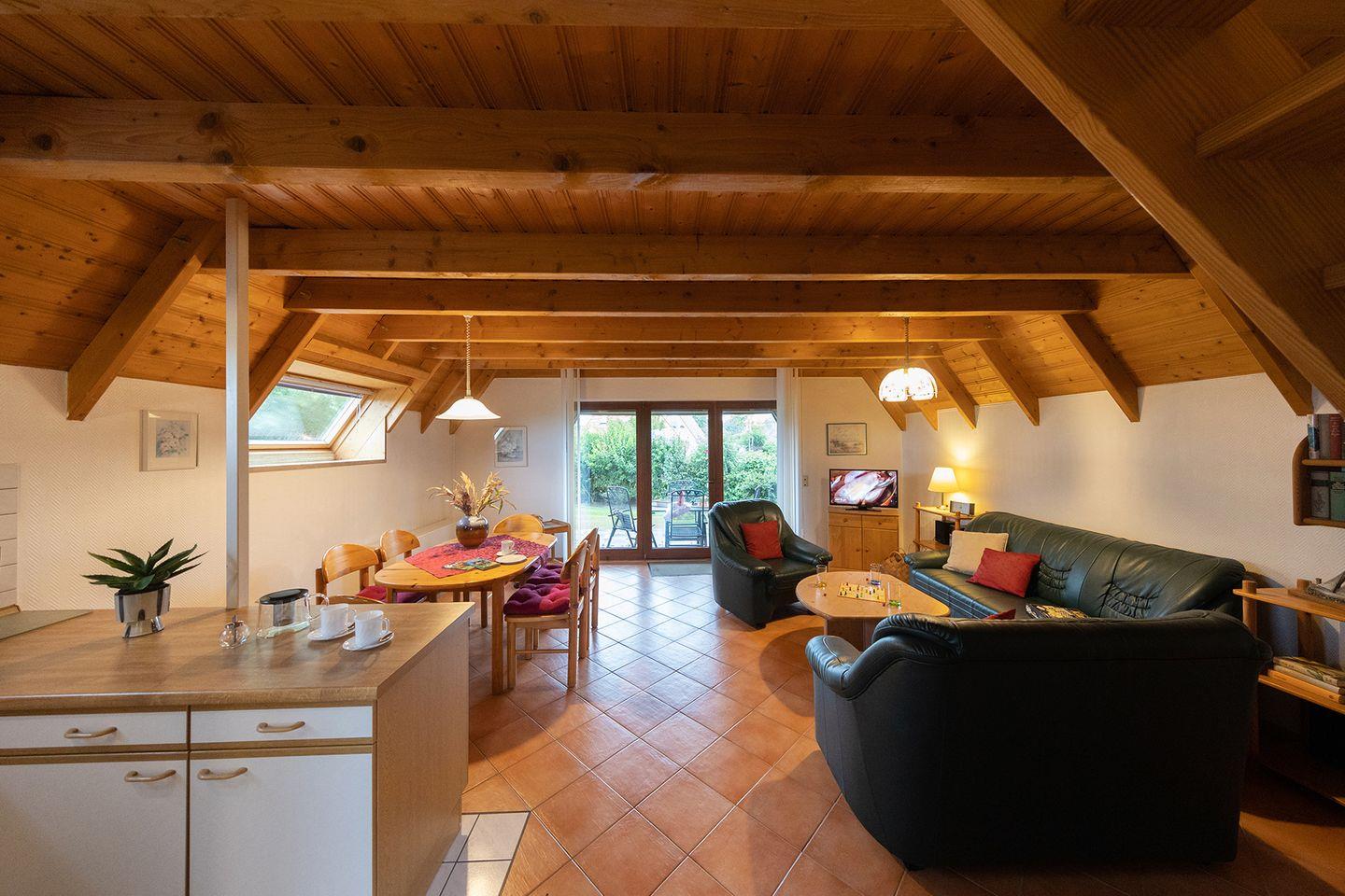 In Dorum-Neufeld gelegen, bietet es auf 61 m² zwei Schlafzimmer, ein helles Bad mit Fenster und Badewanne, ein zusätzliches Gäste-WC und einen offenen Wohn-Essbereich mit komplett ausgestatteter Küche. Kinderbett, Hochstuhl, Treppengitter und Spiele gehören selbstverständlich dazu, ebenso eine eigene Waschmaschine für alles, was nass, matschig oder salzig wird.