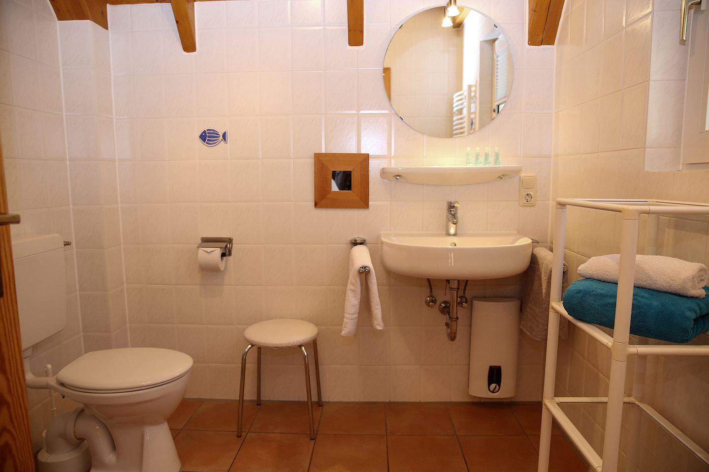 Das Bad mit Wanne, Waschmaschine und Trockner macht auch längere Aufenthalte entspannt. Für kleine Gäste gibt es Kinderbett, Hochstuhl und Treppengitter. Die möblierte Terrasse mit Garten, Grill und Gartenhaus lädt zu langen Abenden ein – mit Blick ins Grüne. Das familienfreundliche Haus steht auf einem gepflegten Grundstück mit kostenfreiem Parkplatz in der Nähe zum Haus, E-Ladesäule in der Anlage.