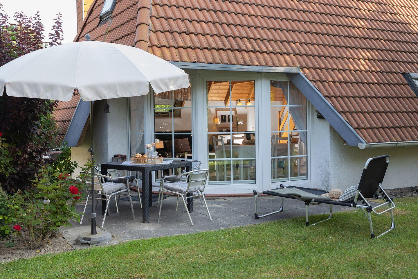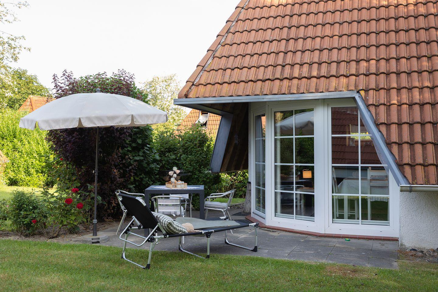 Draußen lädt ein gepflegter Garten mit möblierter Terrasse, Sonnenliegen und Grill zu entspannten Stunden ein, in Strandnähe und mit Gartenblick. Kabel-TV, WLAN, Spiele für Groß und Klein sowie DVD/CD-Player bieten Unterhaltung für Regentage. Hunde sind willkommen.