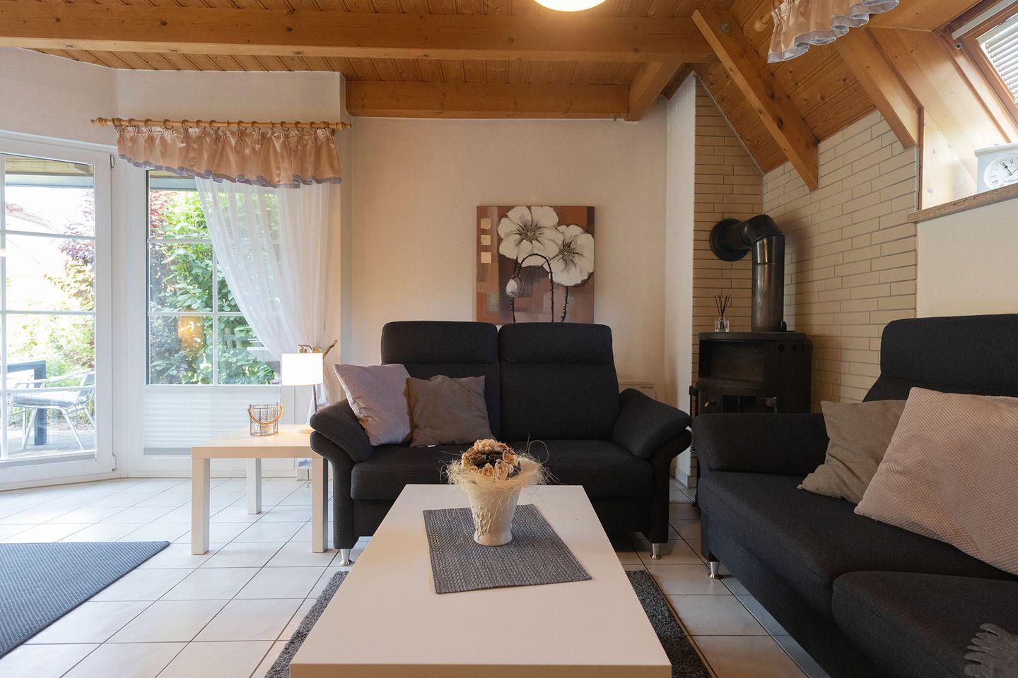 Im Erdgeschoss erwarten euch ein offener Wohnbereich mit Kaminofen und Fußbodenheizung, eine voll ausgestattete Küche mit Ceranfeld, Backofen, Spülmaschine und vieles mehr sowie ein gemütlicher Essplatz. Zwei Schlafzimmer mit Laminatboden, ein modernes Bad mit Dusche, Wanne und Fenster sowie ein separates Gäste-WC sorgen für Komfort. Kinderbett, Hochstuhl, Treppengitter und Steckdosensicherungen sind ebenfalls vorhanden. Das Haus ist durch und durch familienfreundlich.