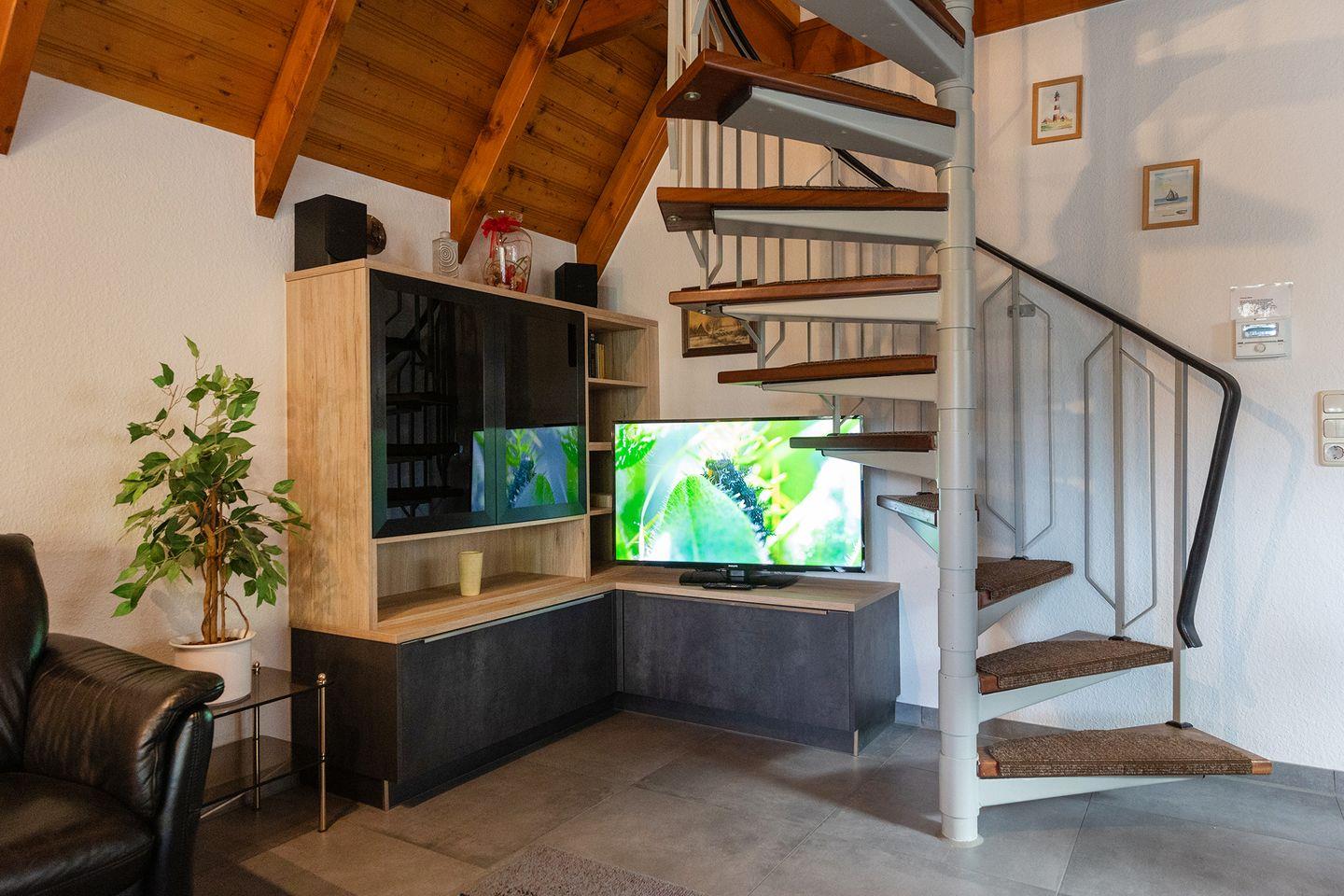Ein Sommermorgen, die Terrassentür offen, der Blick geht ins Grüne – im Ferienhaus Opi Huck Stroot 19 beginnt der Tag ganz entspannt. Auf zwei Etagen und 68?m² bietet das Haus Platz für vier Personen: mit offenem Wohnbereich samt Kaminofen, einer voll ausgestatteten Küche, zwei Schlafzimmern mit Laminatboden sowie einem modernen Bad mit Badewanne und Dusche. Ein separates WC ist ebenfalls vorhanden. Kinderbett, Hochstuhl, Treppengitter und Gesellschaftsspiele machen das Haus besonders familienfreundlich und zugleich allergikerfreundlich.