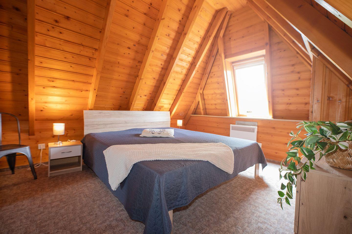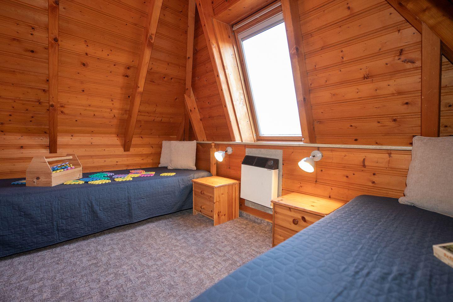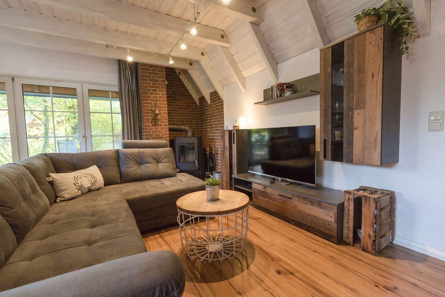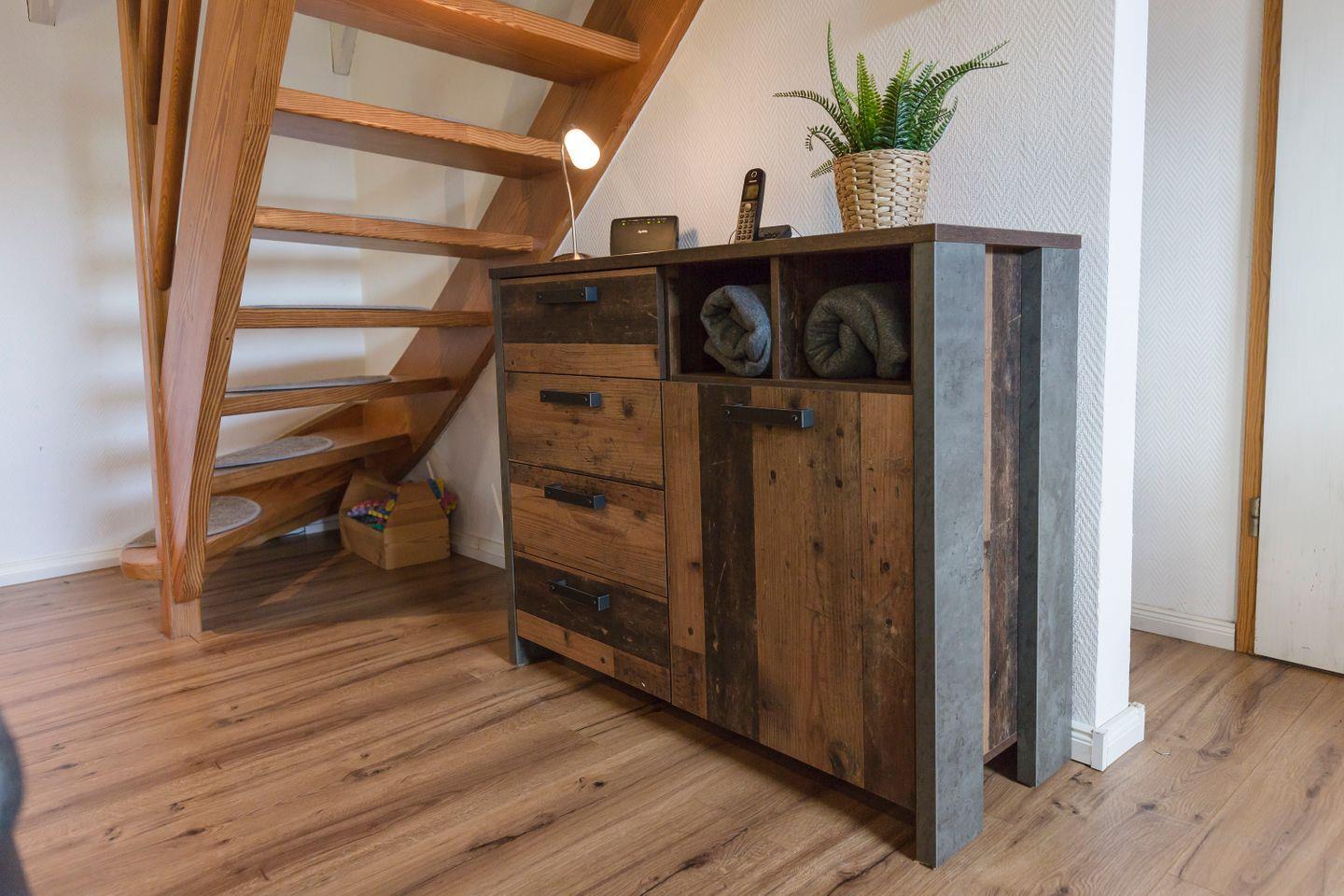 Zwei Schlafzimmer mit Teppichboden, ein gemütlicher Wohnbereich mit Kaminofen und eine komplett ausgestattete Küche sorgen für Komfort. Dazu kommen ein Bad mit Dusche und Wanne, ein Gäste-WC sowie Waschmaschine, Spiele, Kinderbett, Hochstuhl und Treppengitter – familienfreundlich und flexibel.