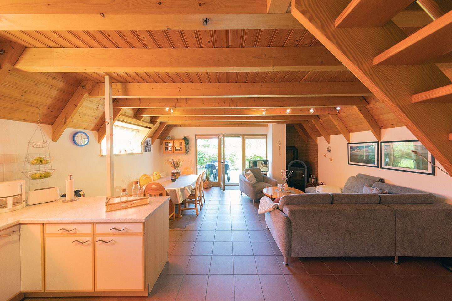 Wenn morgens die ersten Sonnenstrahlen durchs Fenster blitzen und der Duft von frischen Brötchen in der Luft liegt, ist klar: Der Nordseeurlaub mit Kindern hat begonnen. Dieses Ferienhaus für Familien an der Nordsee bietet mit 68?m² Raum für bis zu sechs Personen. Im Erdgeschoss findest du ein großzügiges Wohn-Esszimmer mit gemütlicher Wohnlandschaft, Kaminofen und großem Esstisch sowie eine offene, voll ausgestattete Küche. Das Tageslichtbad mit Fußbodenheizung ist mit Dusche, WC und Waschmaschine ausgestattet - praktisch für Familienalltag und Strandabenteuer.