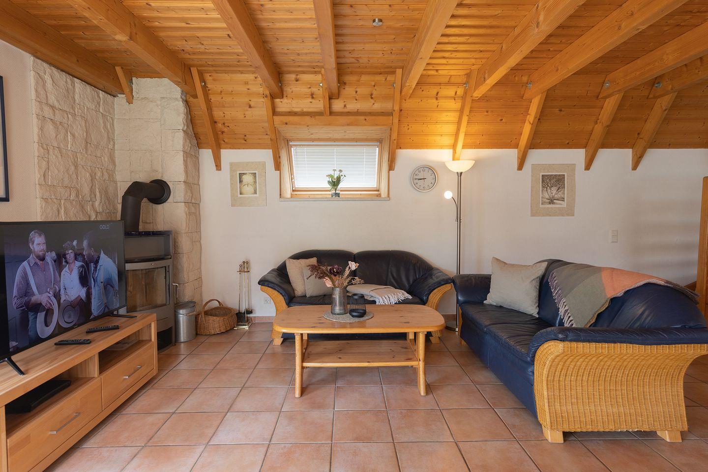 Der offene Wohnbereich mit Fliesenboden, Sofaecke, Kaminofen und zwei Kabel-TVs ist gemütlich und praktisch zugleich. In der voll ausgestatteten Küche findet ihr Ceranfeld, Spülmaschine, Backofen, Mikrowelle, Kaffeemaschine, Mixer und mehr. Zwei Schlafzimmer mit Teppichboden bieten Platz für vier, zwei Zustellbetten ergänzen flexibel. Babybett, Hochstuhl, Treppengitter und Steckdosensicherungen sind vorhanden.
