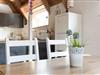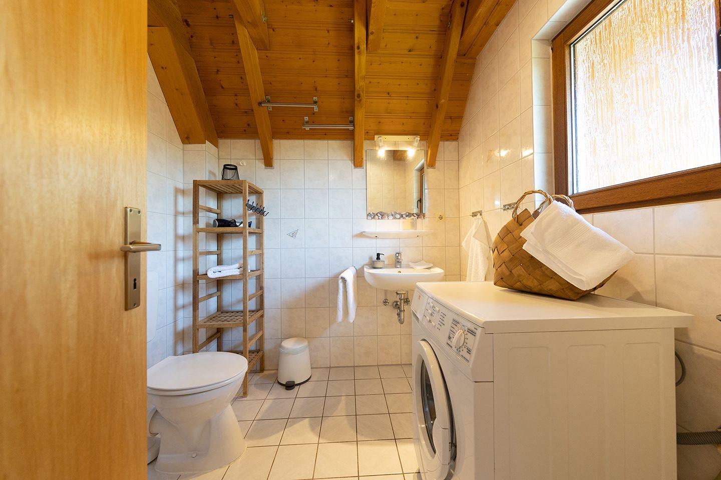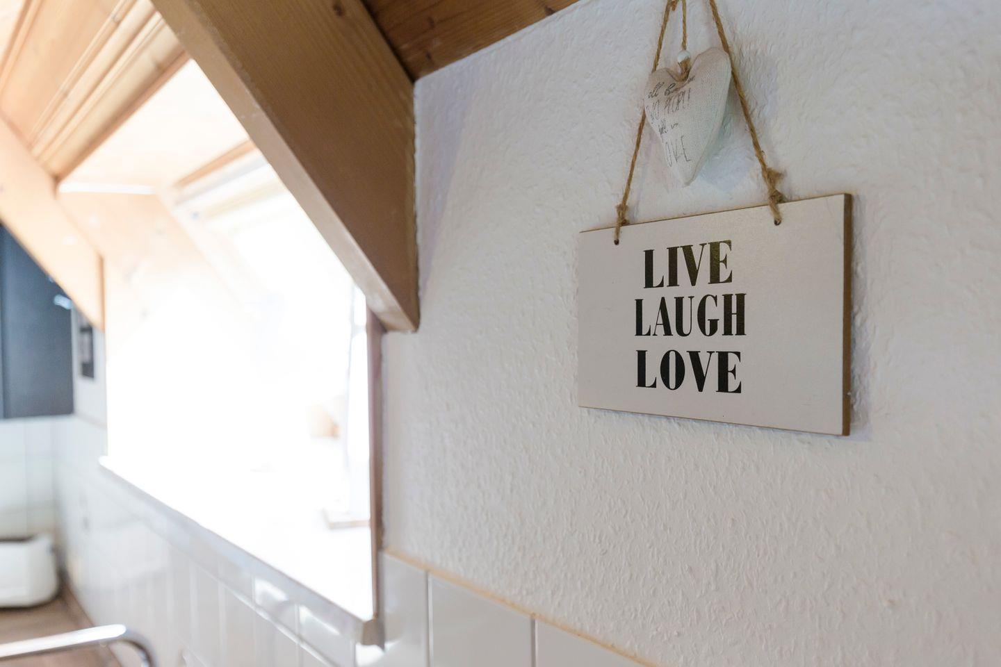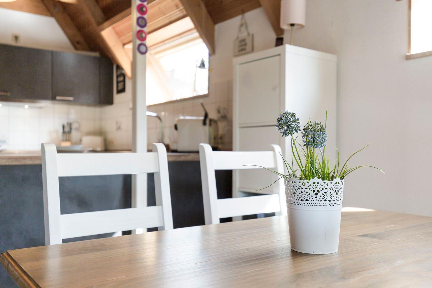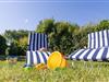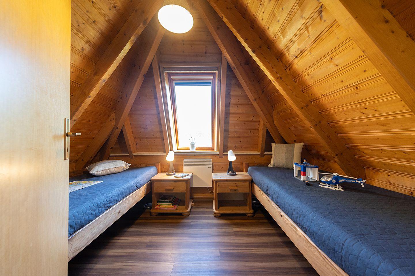 Im Obergeschoss liegen ein Elternschlafzimmer mit Doppelbett und ein separates Kinderzimmer mit zwei Einzelbetten. Beide Räume verfügen über Vinylböden, Insektenschutz und Verdunkelungsrollos. Ein zweites WC befindet sich ebenfalls oben. Kinderbett, Hochstuhl und Treppengitter sind selbstverständlich vorhanden. Draußen lädt eine möblierte Terrasse zum Verweilen ein, während der Garten genug Platz zum Spielen bietet. Das familienfreundliche Haus liegt in Strandnähe (1km) – Watt’n Bad, Leuchtturm und Kutterhafen sind zu Fuß erreichbar. Kostenfreie Parkplätze in unmittelbarer Nähe, E-Ladesäule in der Anlage.