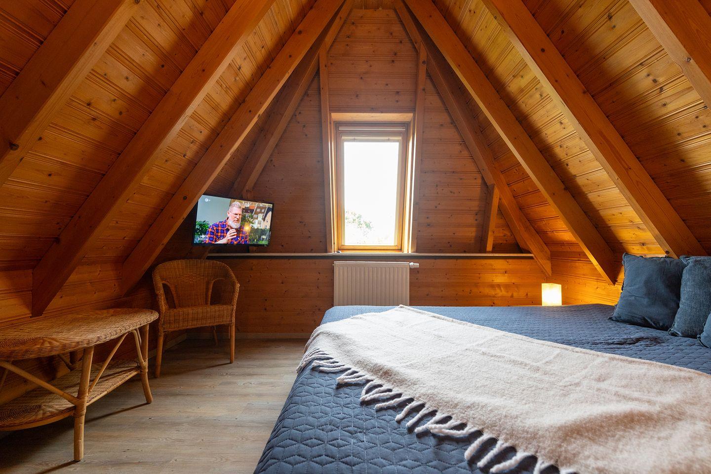 Einmal die Taschen abstellen, durchatmen und ankommen. In diesem Ferienhaus in Dorum-Neufeld ist genau das möglich. Mitten im Grünen, nur ein paar Gehminuten vom Deich entfernt, bietet es auf zwei Etagen Platz für sechs Personen. Im Erdgeschoss: ein heller Wohnbereich mit Kaminofen und Ledercouch, eine offene Küche, ein Schlafzimmer mit zwei Einzelbetten und ein Duschbad. Oben: das Elternschlafzimmer mit Doppelbett, ein weiteres Zimmer mit getrennten Betten und ein zusätzliches WC.