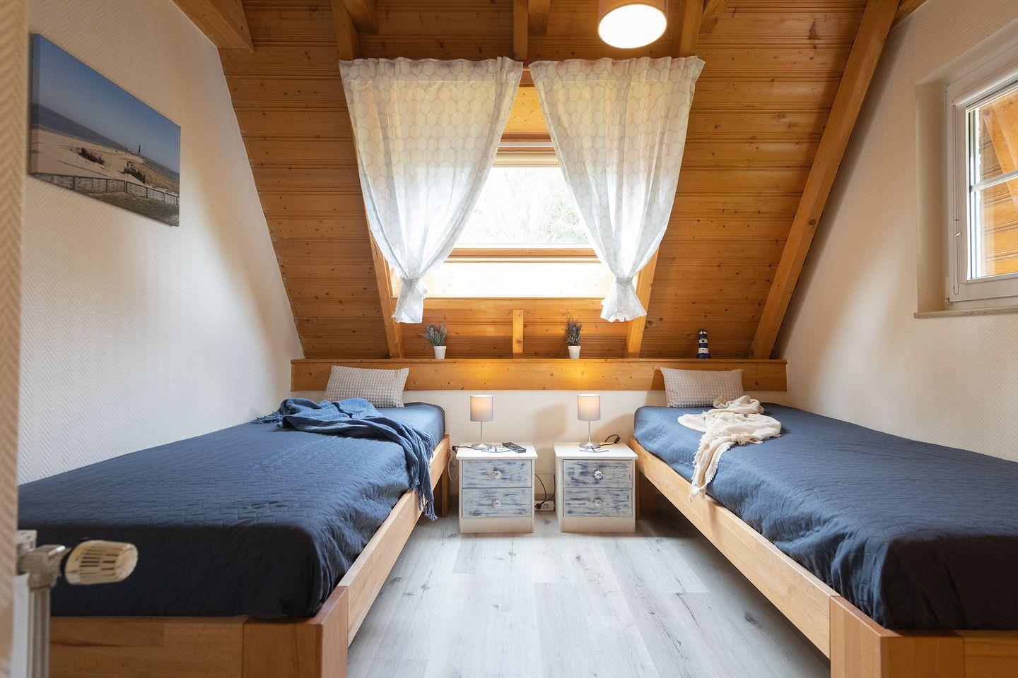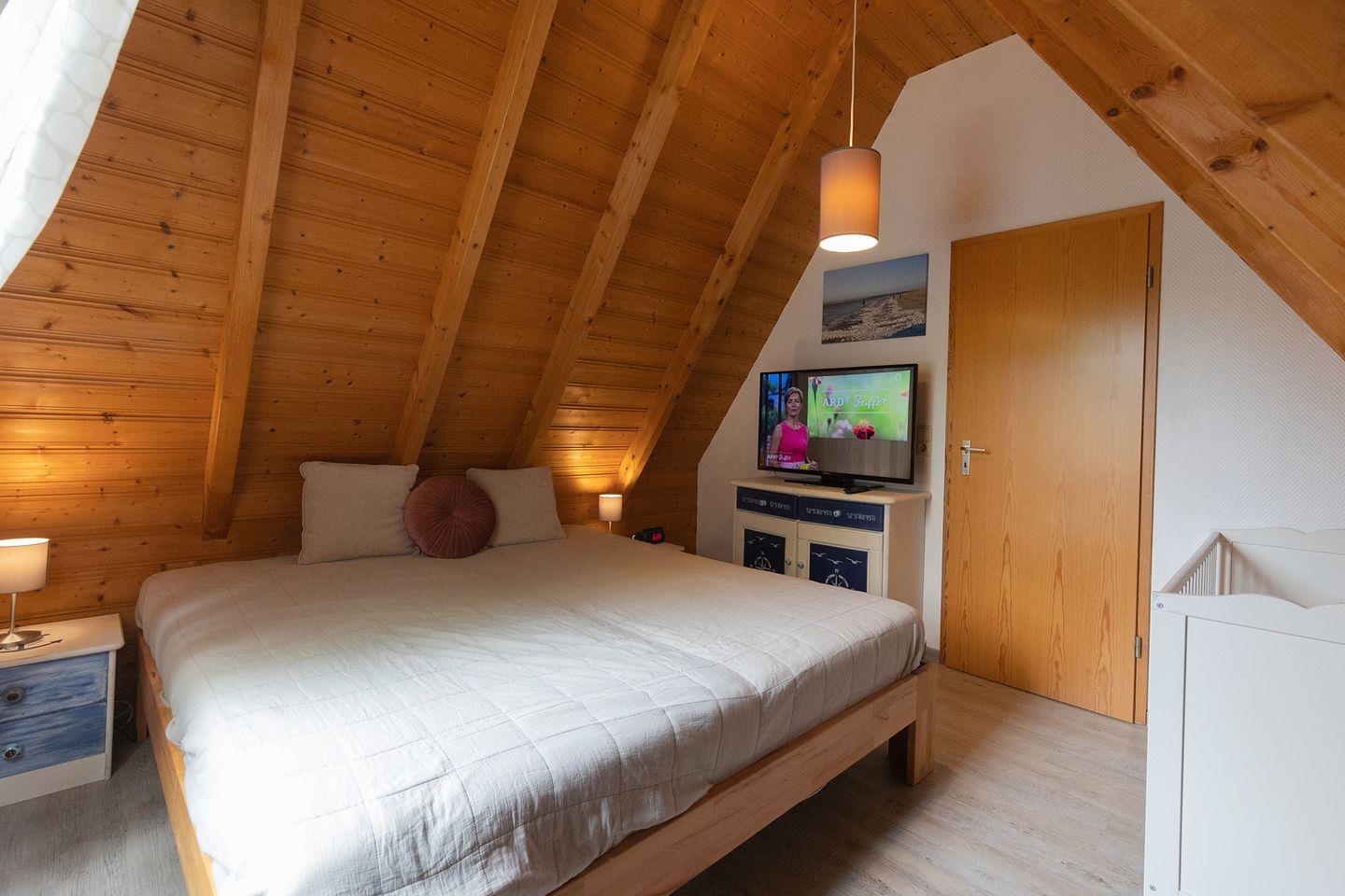 Auf 85 qm gibt es viel Platz für bis zu sechs Personen: ein Elternschlafzimmer, zwei Kinderzimmer – davon eines im Erdgeschoss – sowie zwei WCs und ein modernes Bad mit Dusche und Waschmaschine. Die Schlafräume lassen sich verdunkeln und sind mit pflegeleichtem Laminat ausgestattet. Draußen lädt eine uneinsehbare, möblierte Terrasse zum Spielen und Entspannen ein.